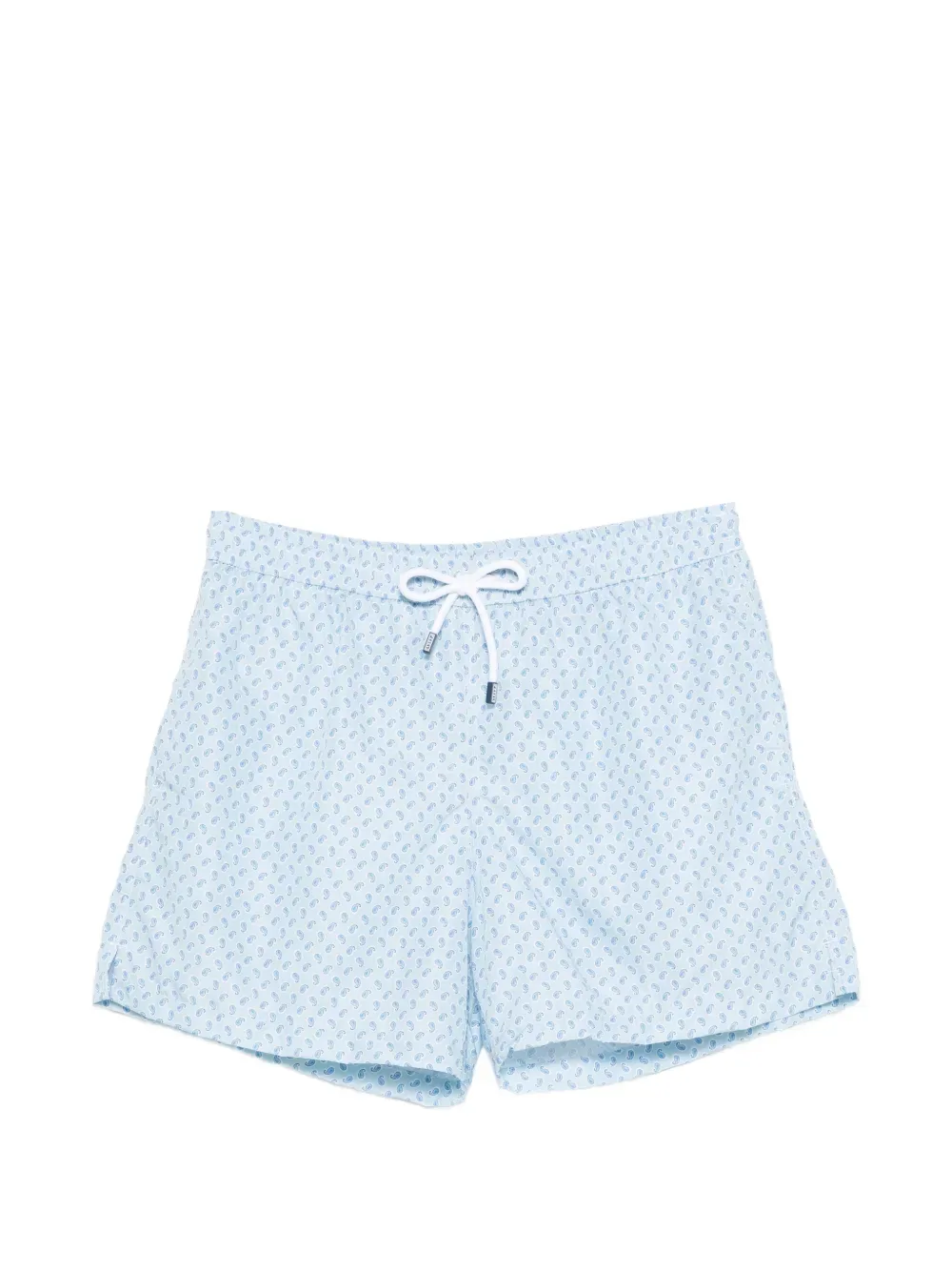 Светло-голубые шорты с принтом "пейсли", застежка на шнурке, задний карман. Примеряйте купальники поверх собственных вещей. Изделие поставляется в защитном мешочке.