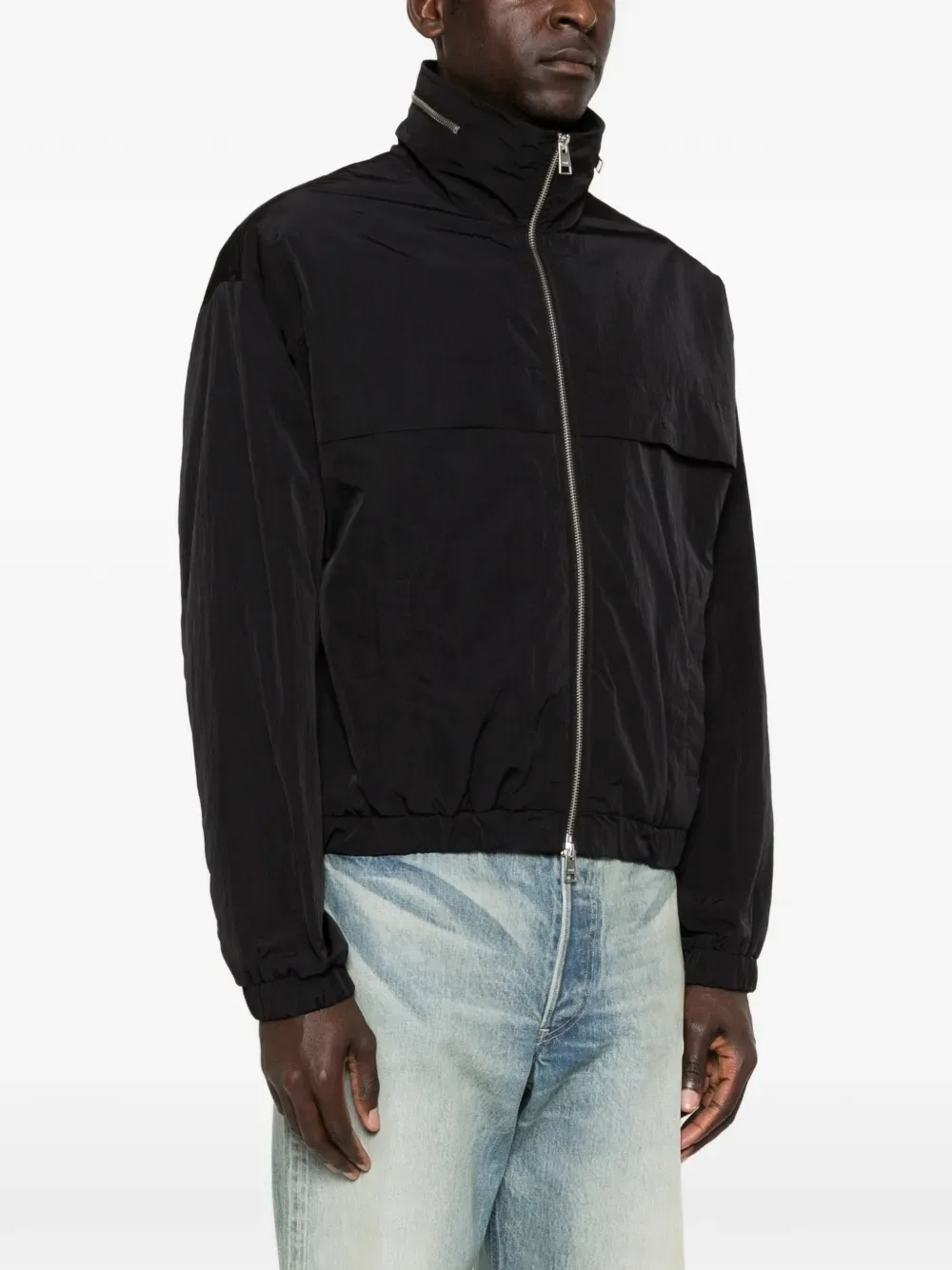 Черный цвет, застежка-молния спереди, фурнитура серебристого цвета, высокий воротник, эластичный нижний край, эластичные манжеты