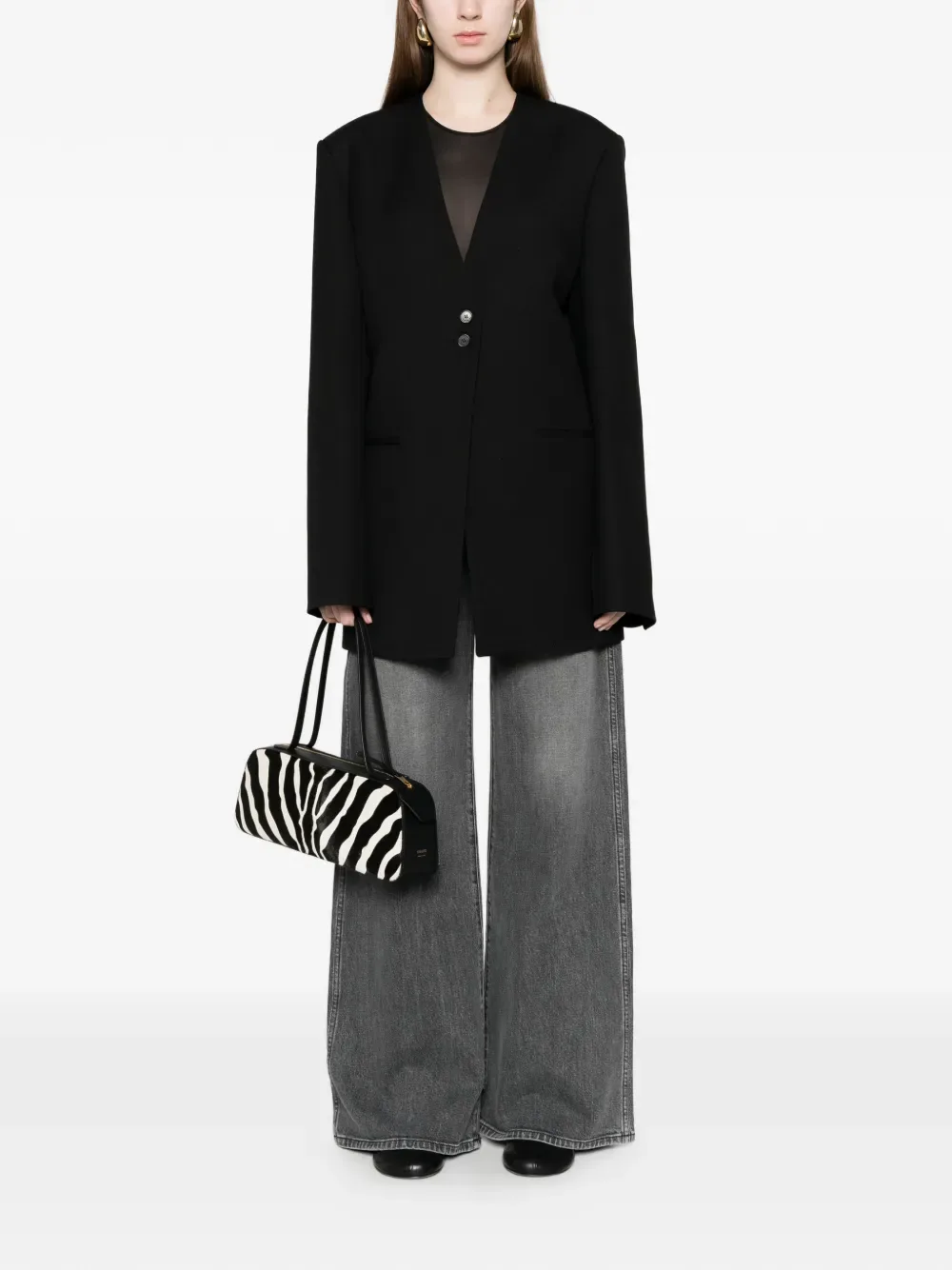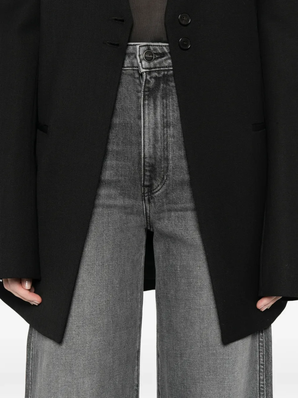 Серые широкие брюки с пятью карманами и шлевками для ремня