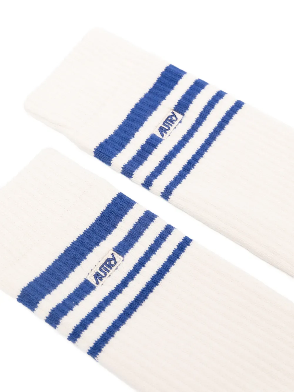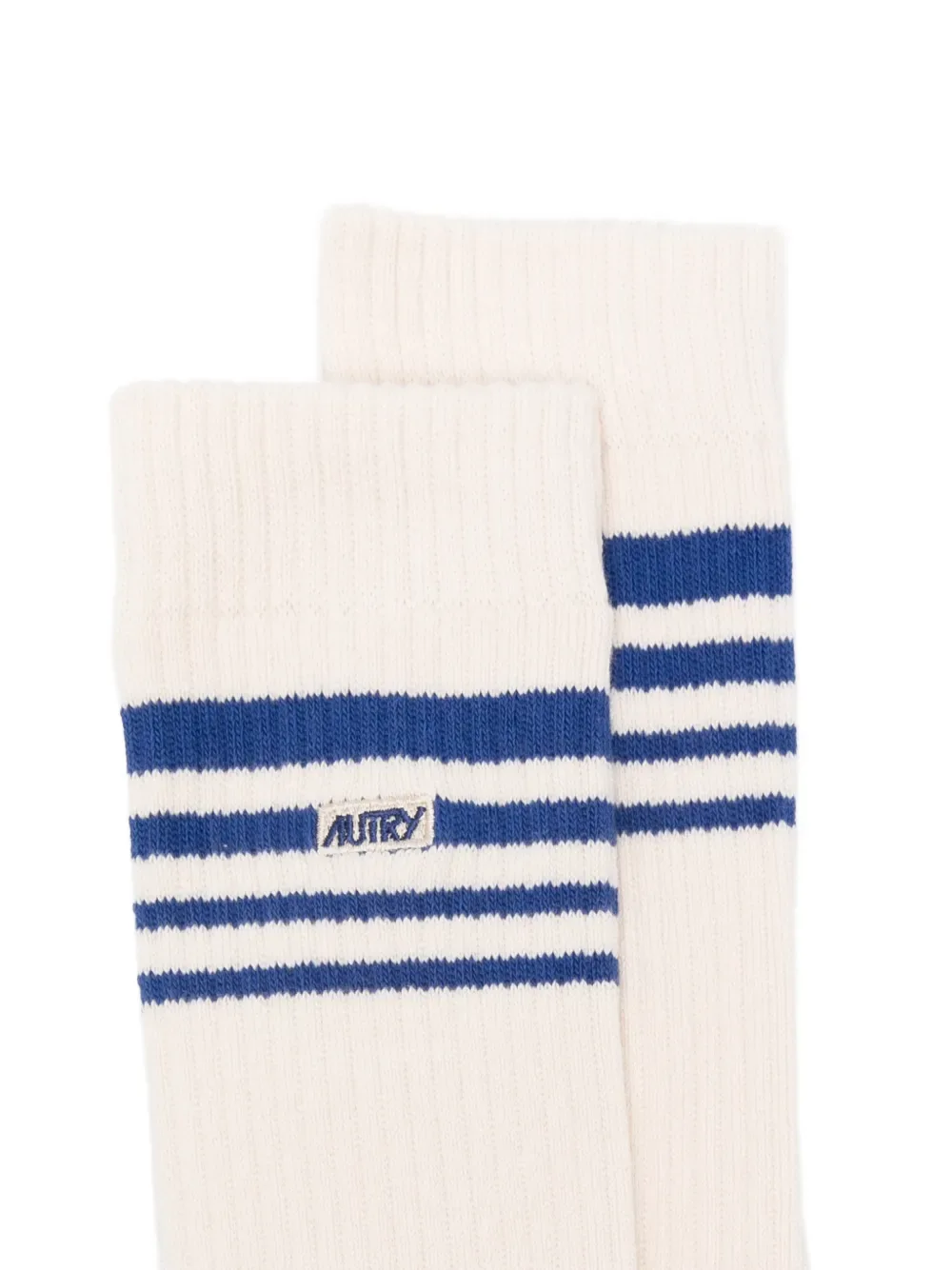 Бежевые носки с синими полосками и вышитым логотипом