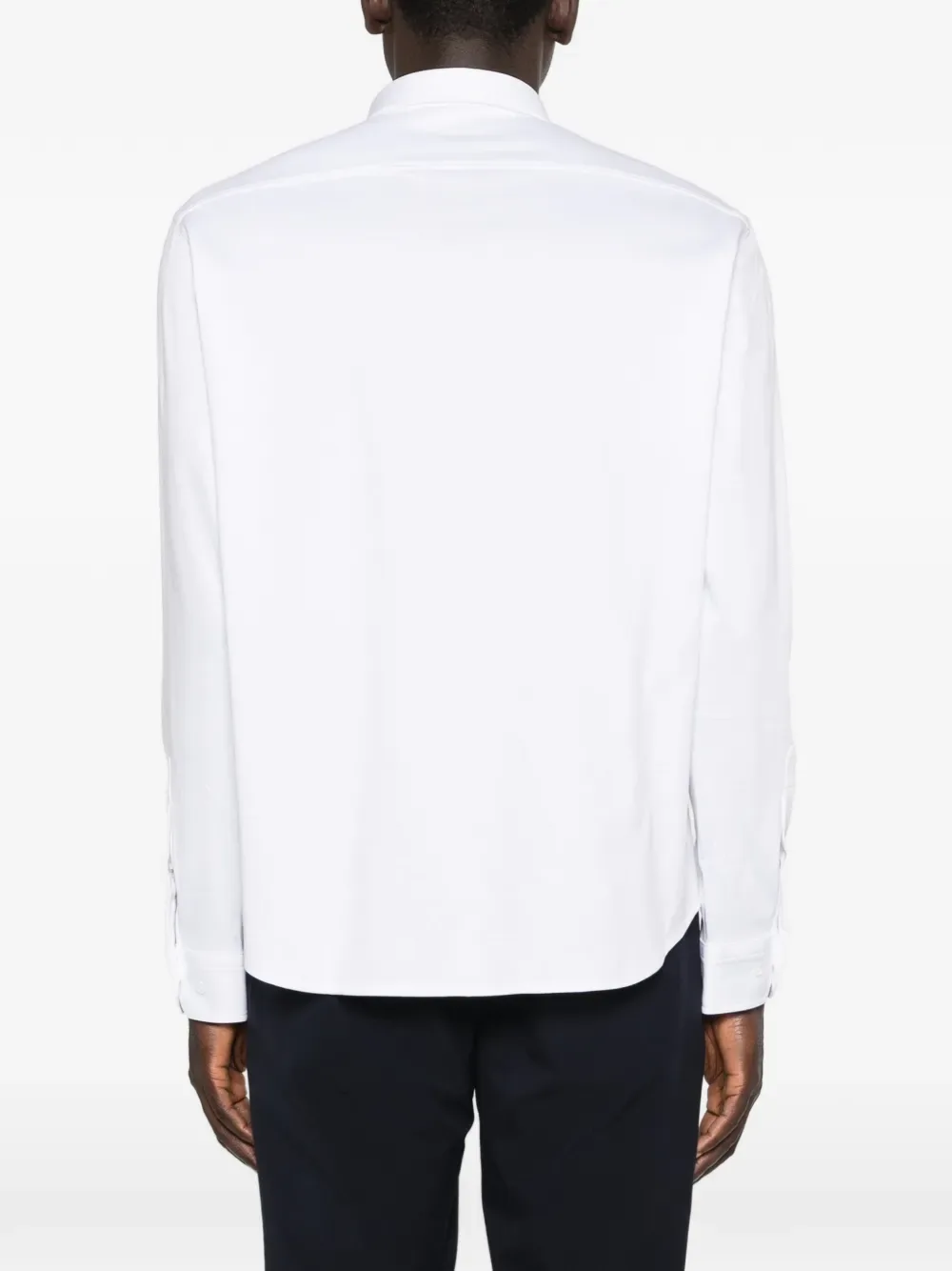 Белая рубашка с длинными рукавами, застежкой на пуговицы, логотипом и остроконечным воротником