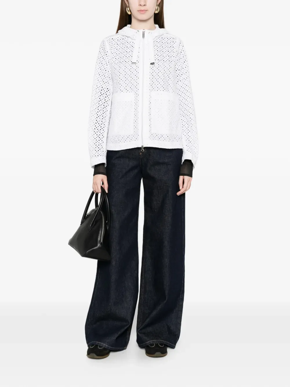 Белый худи с застежкой-молнией и перфорированным дизайном