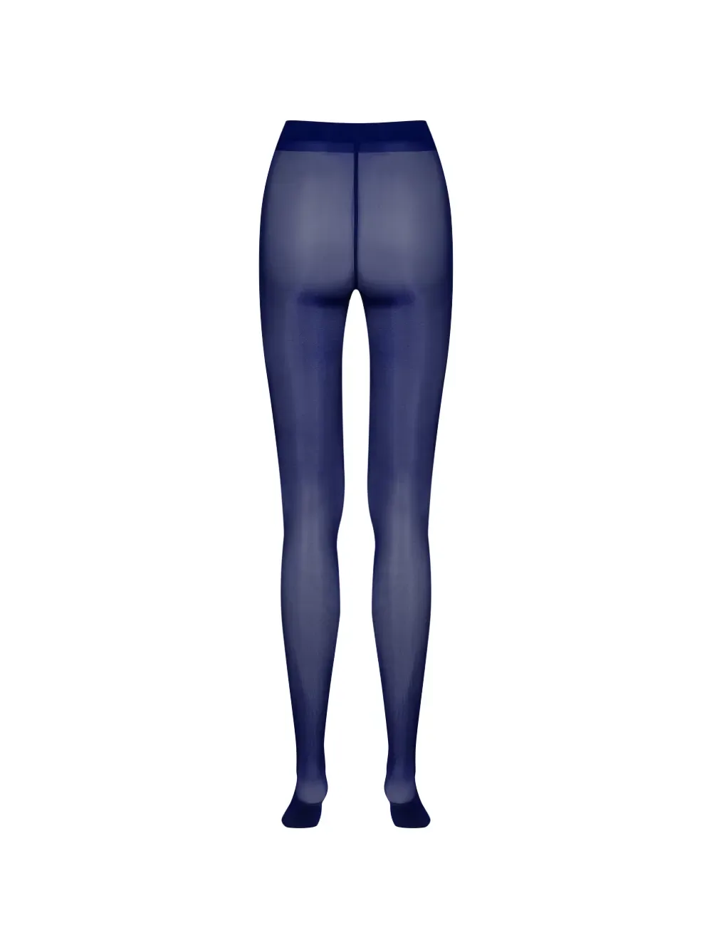 Темно-синий полупрозрачный материал, полная длина. Пожалуйста, убедитесь перед вскрытием, так как носки и чулочные изделия можно вернуть только в оригинальной, нераспечатанной упаковке.