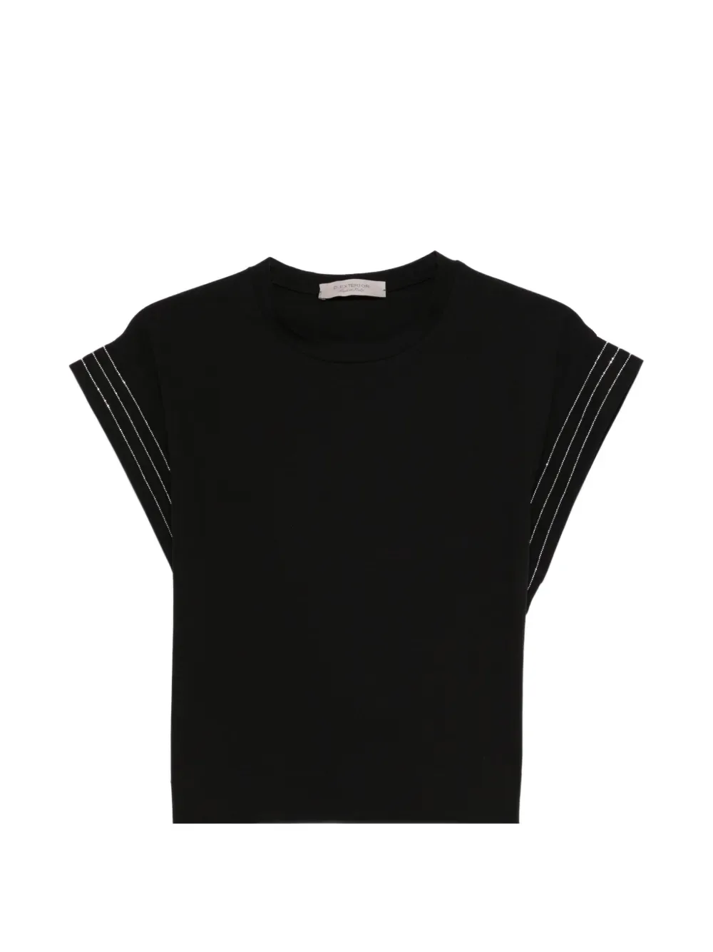 Черный декорированный топ без рукавов с круглым вырезом