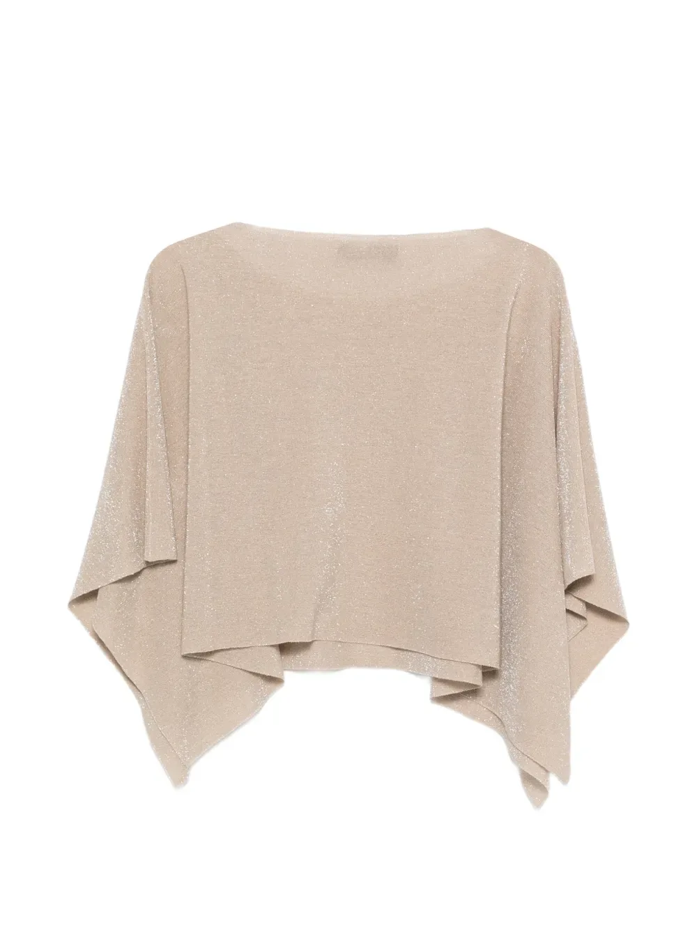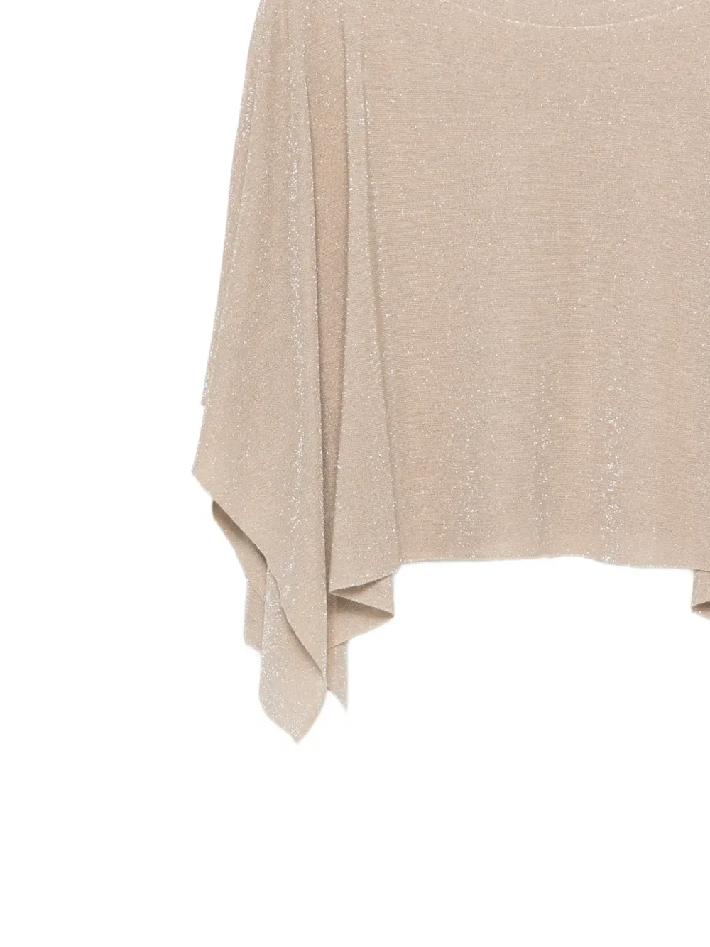 Бежевый и серебристый металлический блеск, круглый вырез, драпированный дизайн