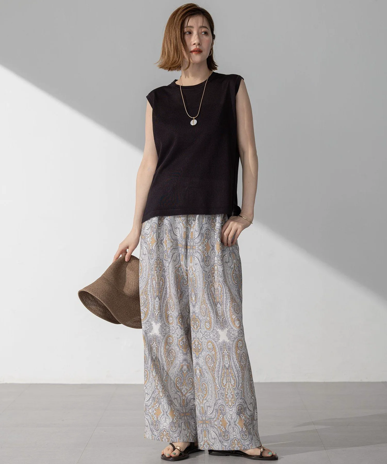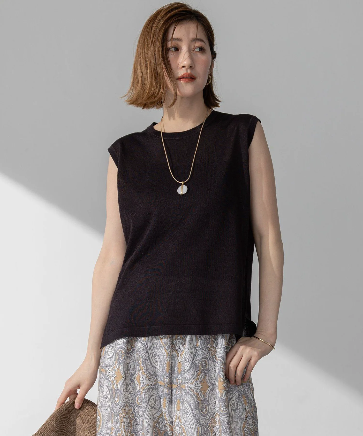 Пуловер без рукавов из трикотажа. Немного более плотная ткань уменьшает прозрачность. Он не подчеркивает линии тела, поэтому его можно носить как самостоятельно, так и в сочетании с платьем-майкой или комбинезоном. Он прост, но универсален. Доступен в пяти цветах: спокойный цвет слоновой кости (#003), базовый черный (#005), мягкий бежевый (#033), изысканный темно-коричневый (#035) и новый, женственный, бледно-розовый (#012).
