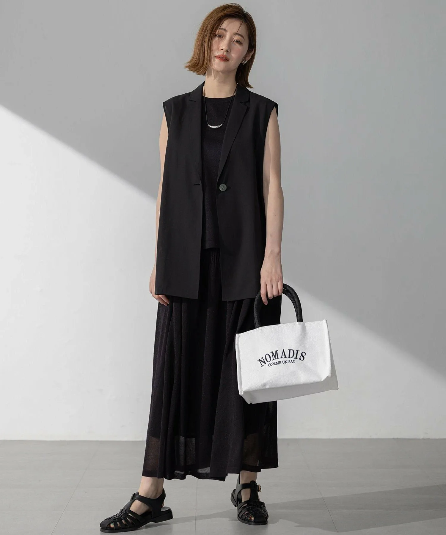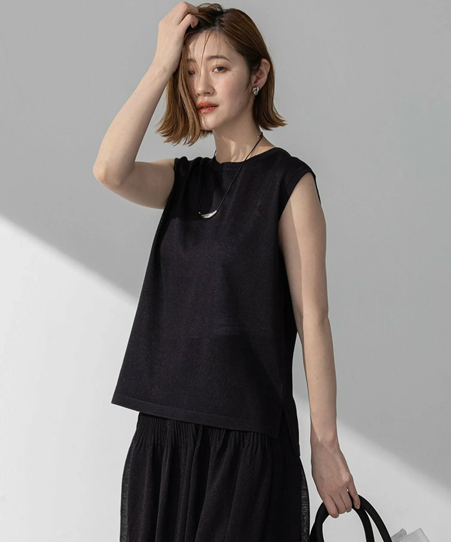 Пуловер без рукавов из трикотажа. Немного более плотная ткань уменьшает прозрачность. Он не подчеркивает линии тела, поэтому его можно носить как самостоятельно, так и в сочетании с платьем-майкой или комбинезоном. Он прост, но универсален. Доступен в пяти цветах: спокойный цвет слоновой кости (#003), базовый черный (#005), мягкий бежевый (#033), изысканный темно-коричневый (#035) и новый, женственный, бледно-розовый (#012).