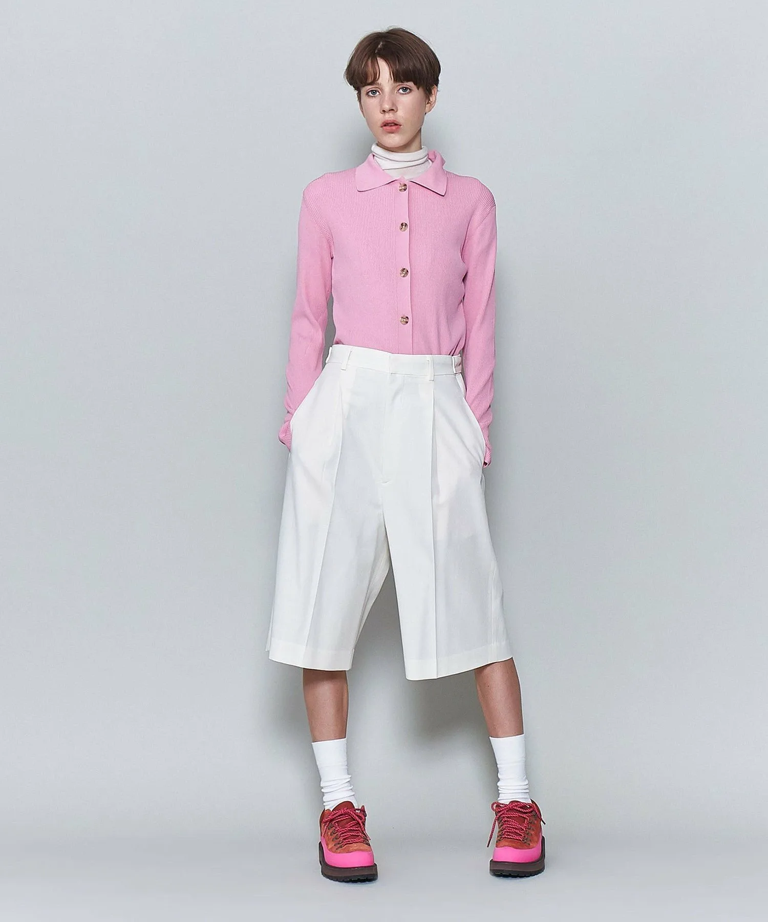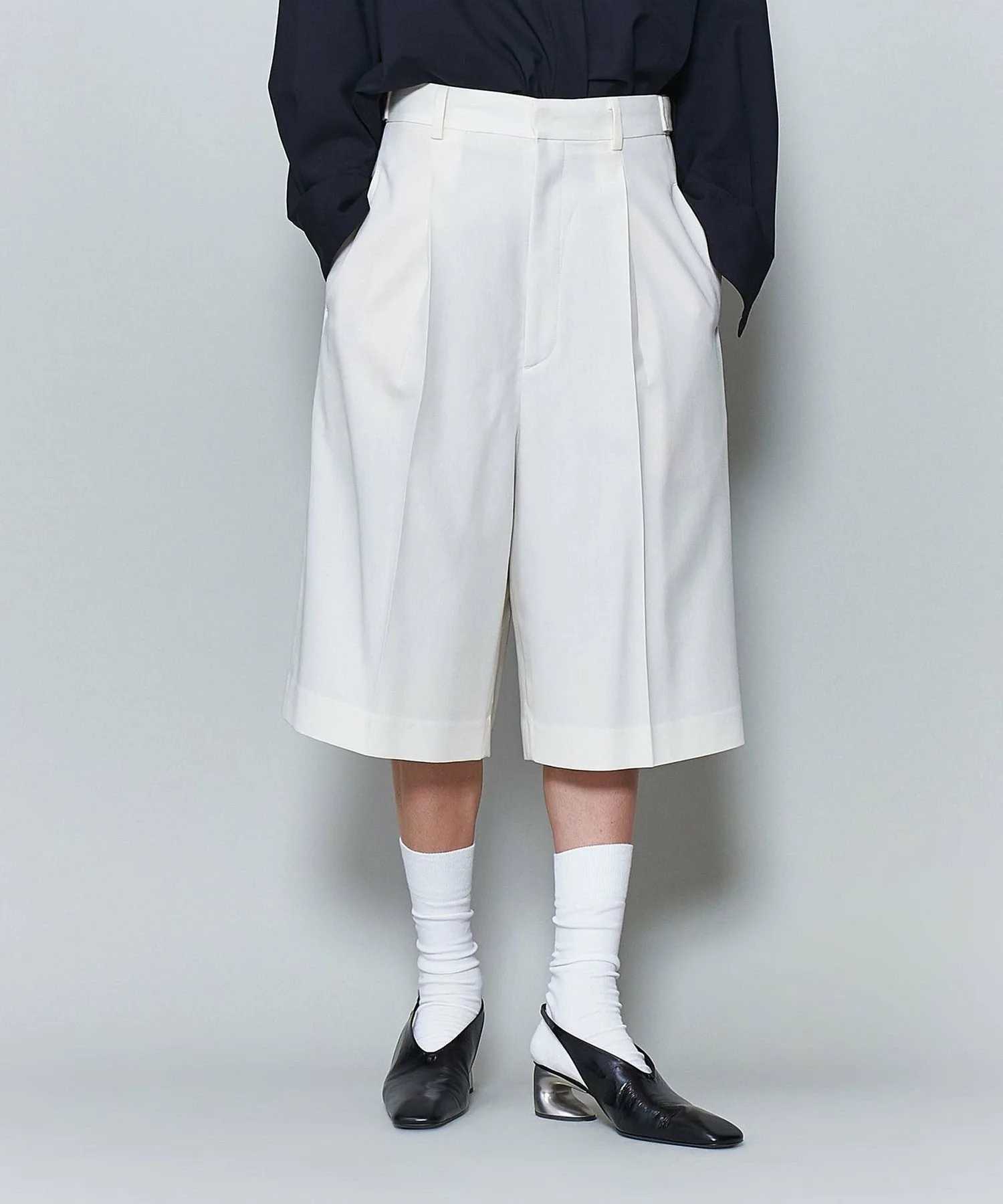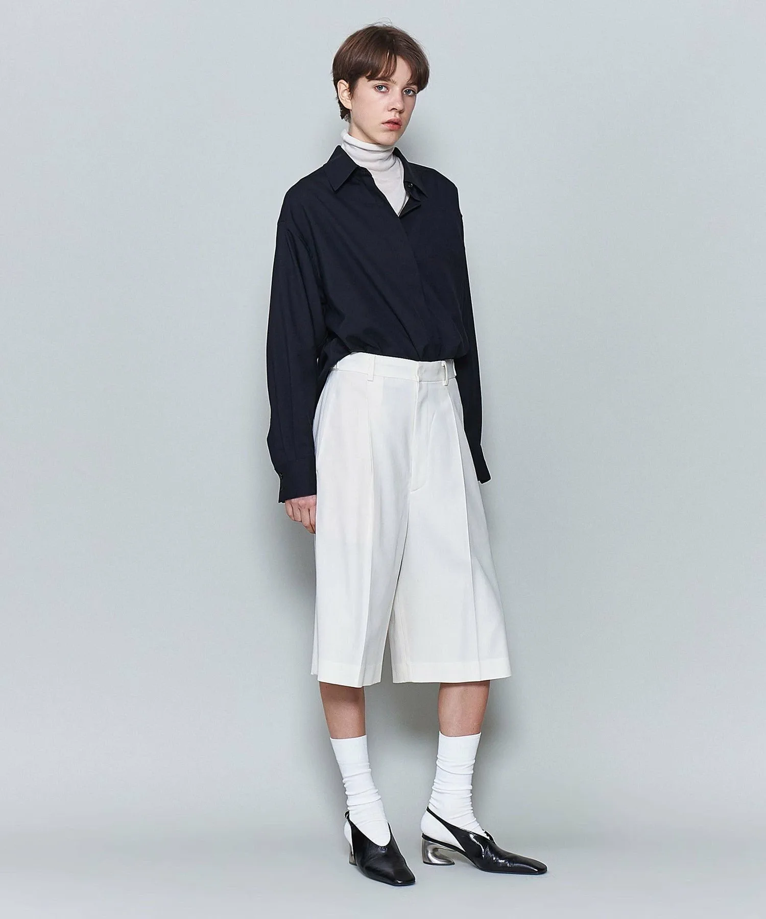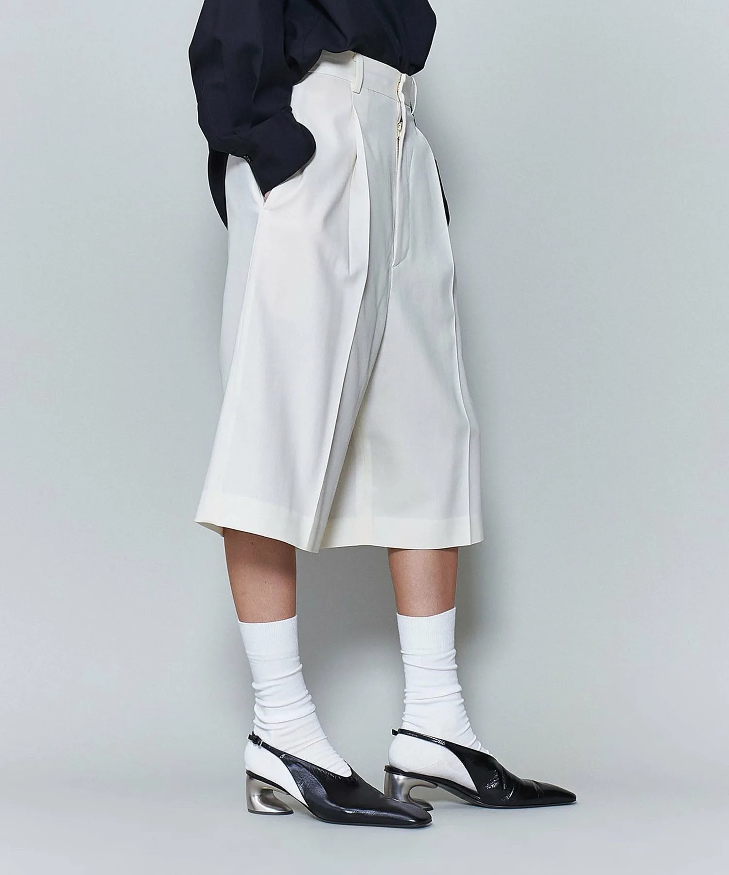 Эти шорты с воротником-стойкой добавят свежести осенним и зимним стилям, которые часто бывают тяжелыми. Пряжа плотно скручена и смешана с шерстью и нейлоном, что обеспечивает умеренную драпировку и сухую текстуру. Сочетайте их с курткой или пальто для создания расслабленного образа. Силуэт с широким подолом и длиной до колена тщательно продуман для создания изысканного и утонченного образа. Хотя изделие имеет подкладку, мы рекомендуем носить бежевое нижнее белье, близкое к вашему тону кожи. [Примечания] Перед использованием изделия обязательно ознакомьтесь с «Инструкциями по уходу» и «Инструкциями по стирке» на этикетке. Изображения товара могут отличаться от реального цвета в зависимости от условий освещения и настроек вашего компьютера. Благодарим за понимание. Для приблизительного представления цвета, пожалуйста, обратитесь к изображению товара.