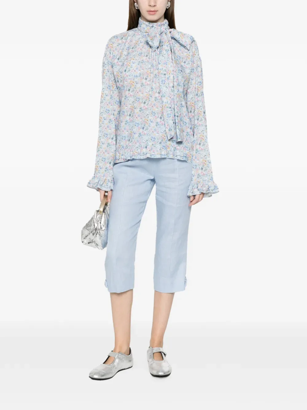 Блузка с цветочным узором и бантом Nº21, синий 63 274₽