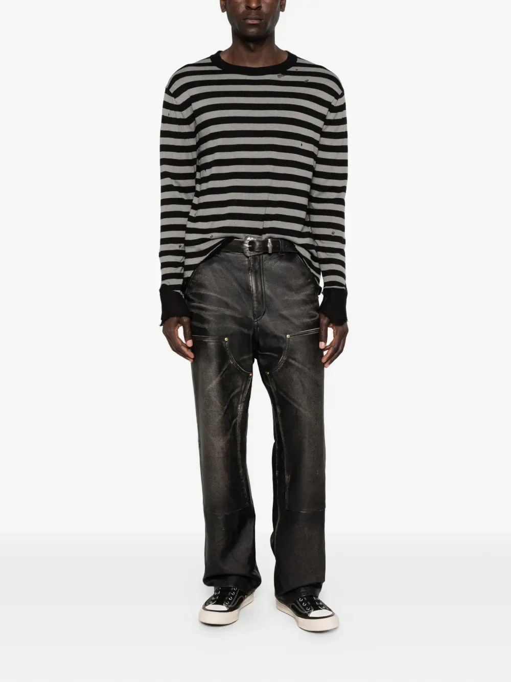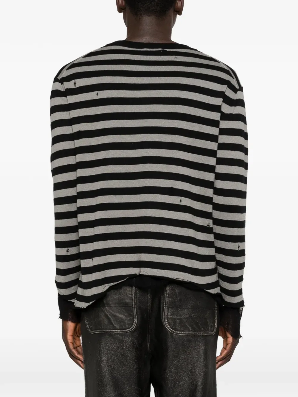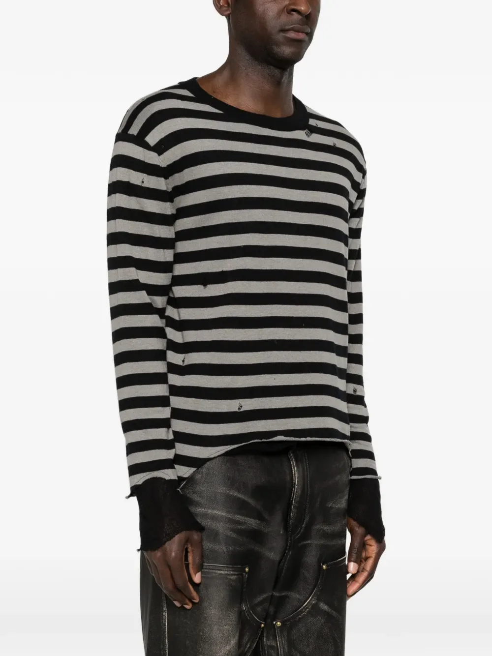 Черный/серый полосатый, круглый вырез, длинные рукава, необработанный край