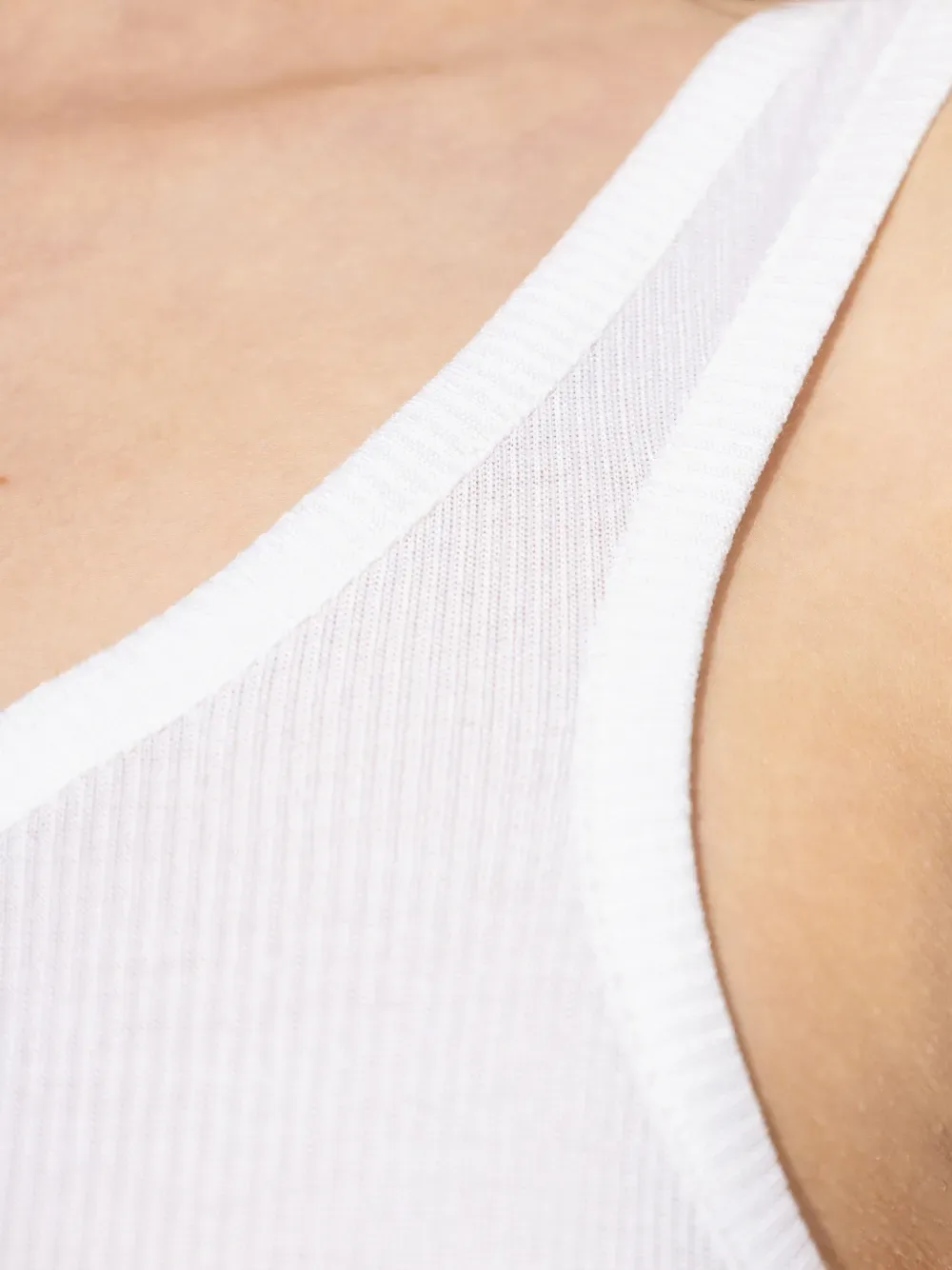 Белый топ с ребристой текстурой на одно плечо и тоном логотипа