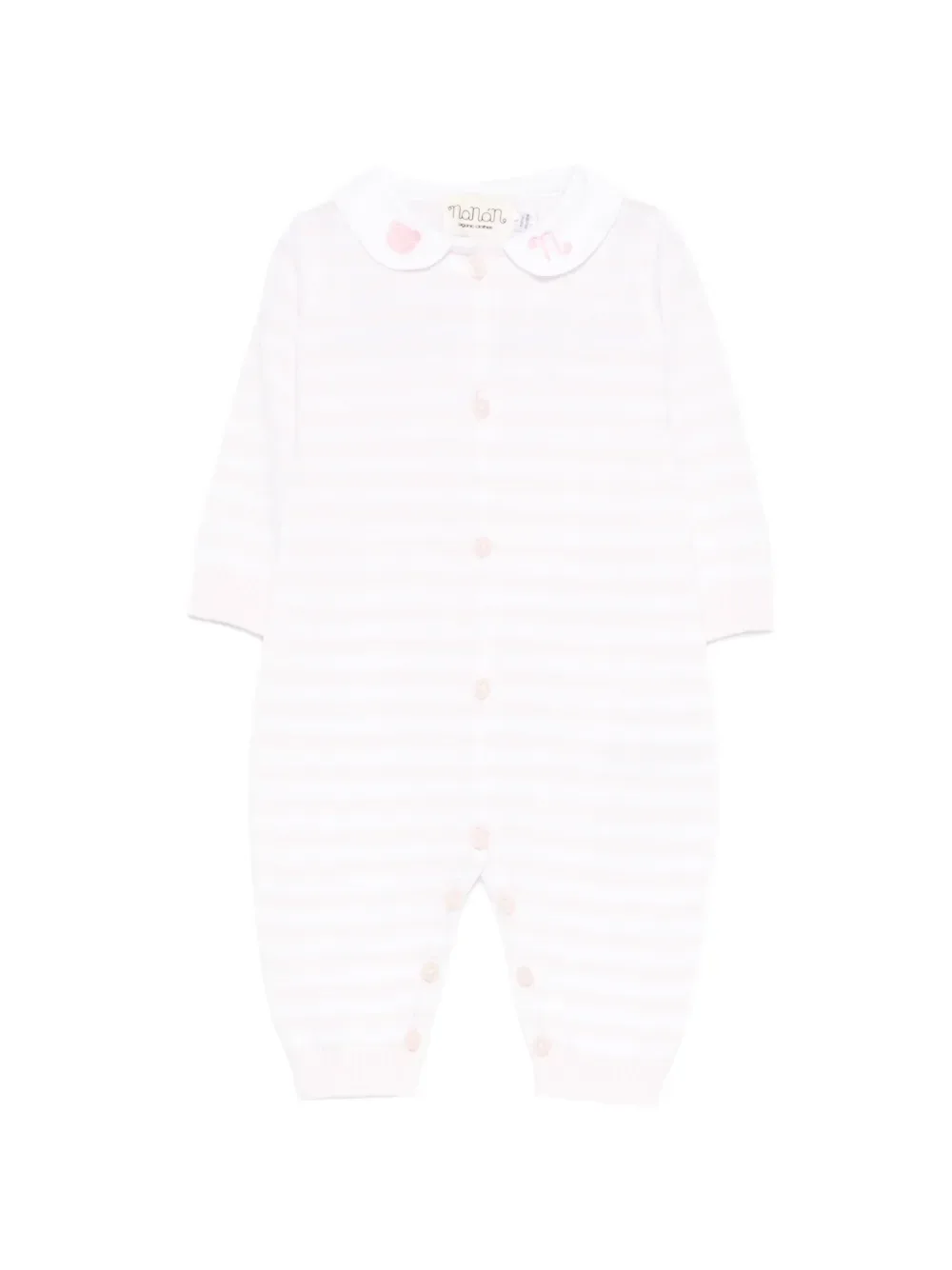 Светло-розовый с полосатым узором, застежка на пуговицы, вышитые детали, воротник Питер Пэн, длинные рукава