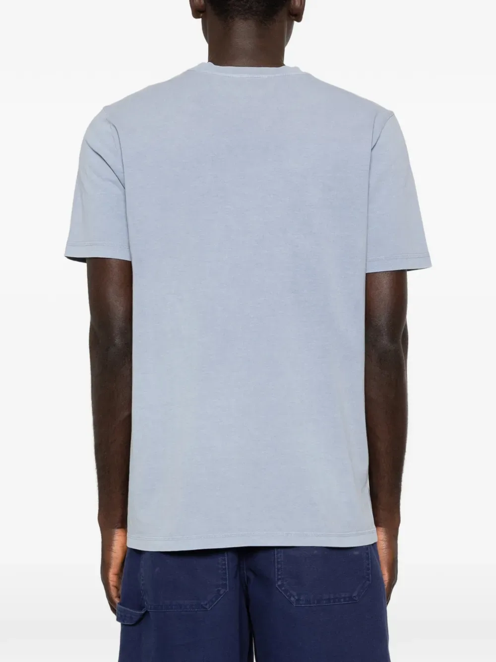 Синий футболка с принтом логотипа, круглым вырезом и короткими рукавами