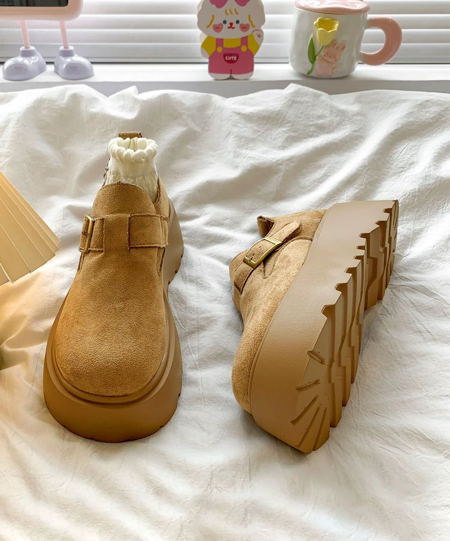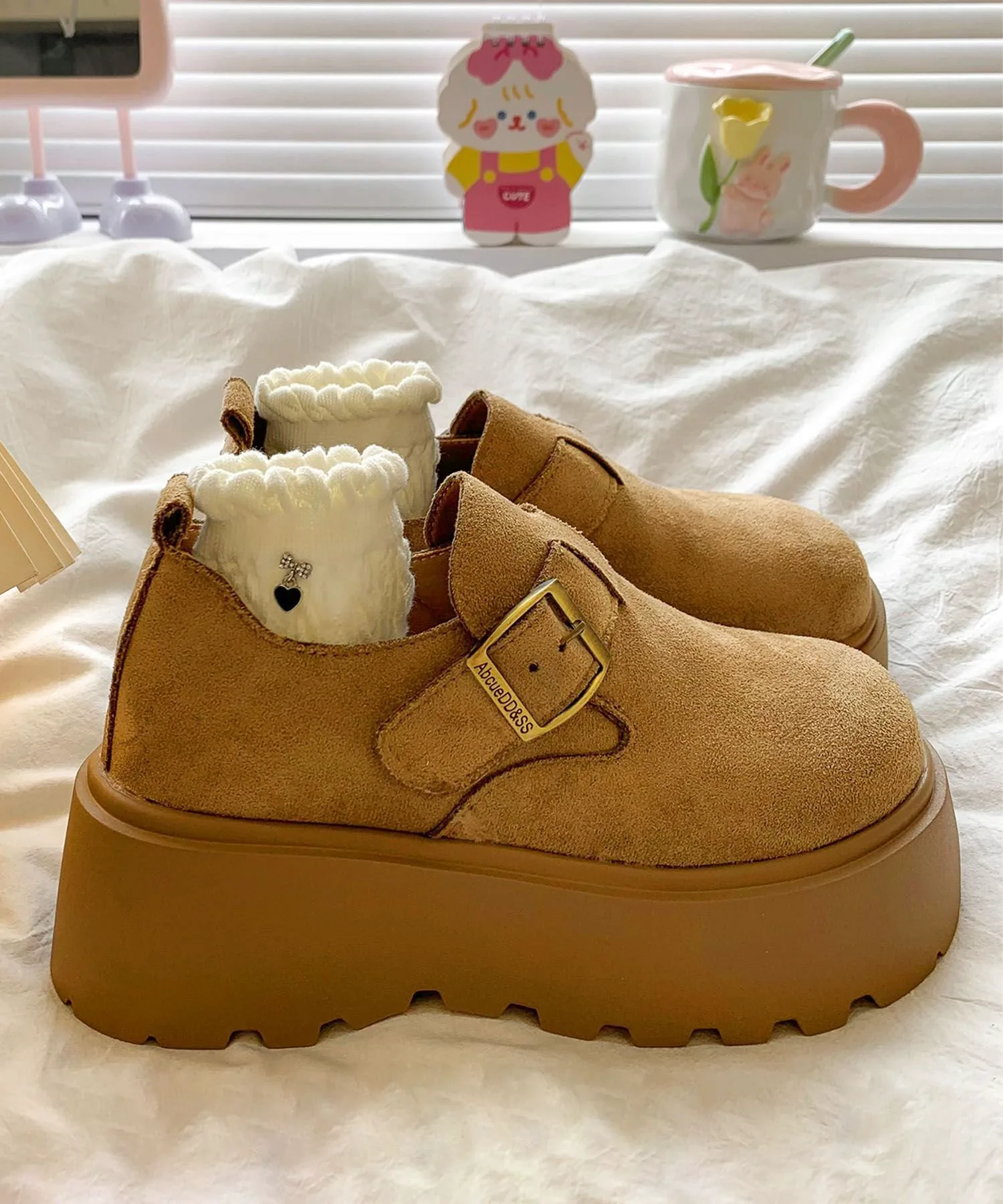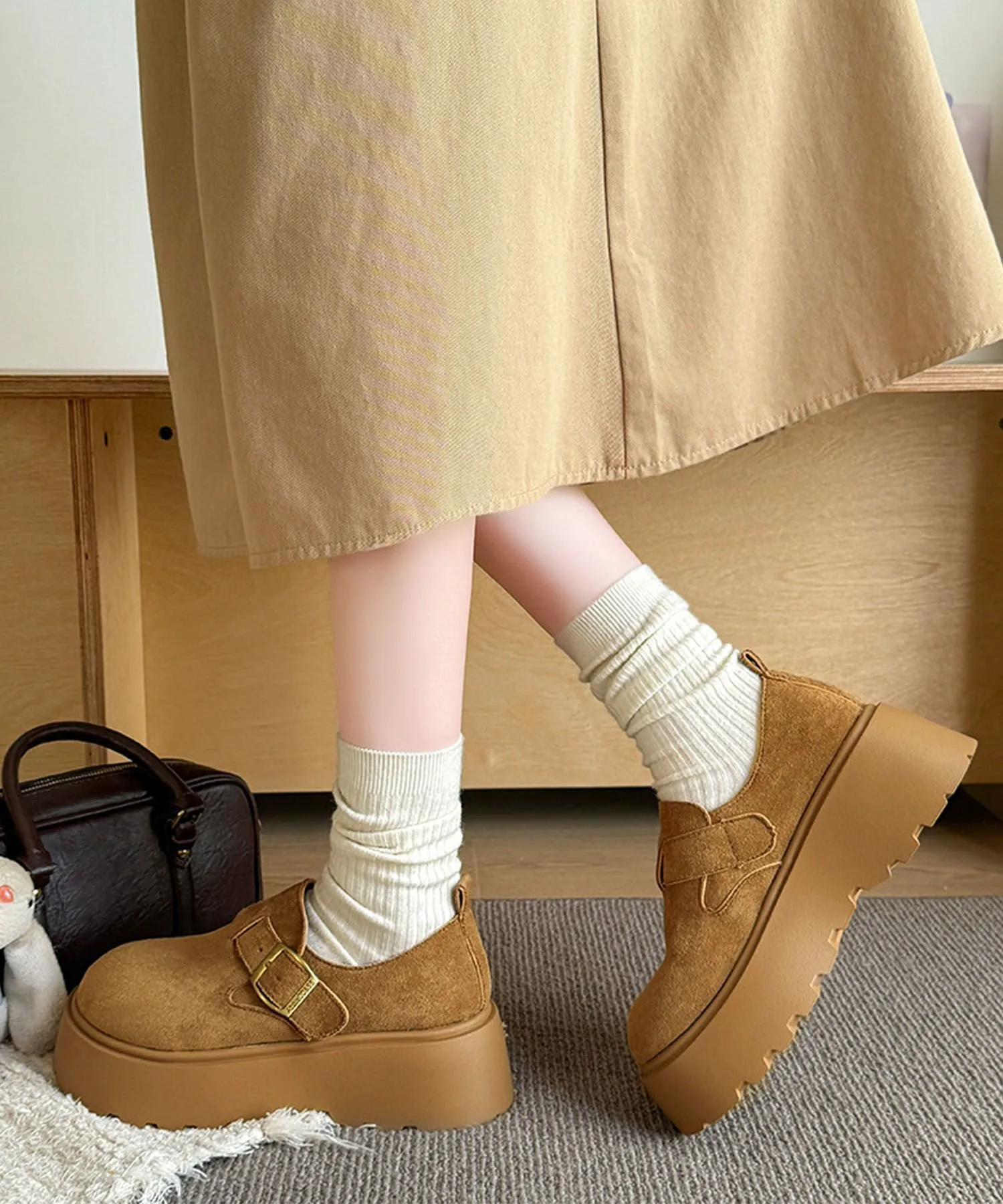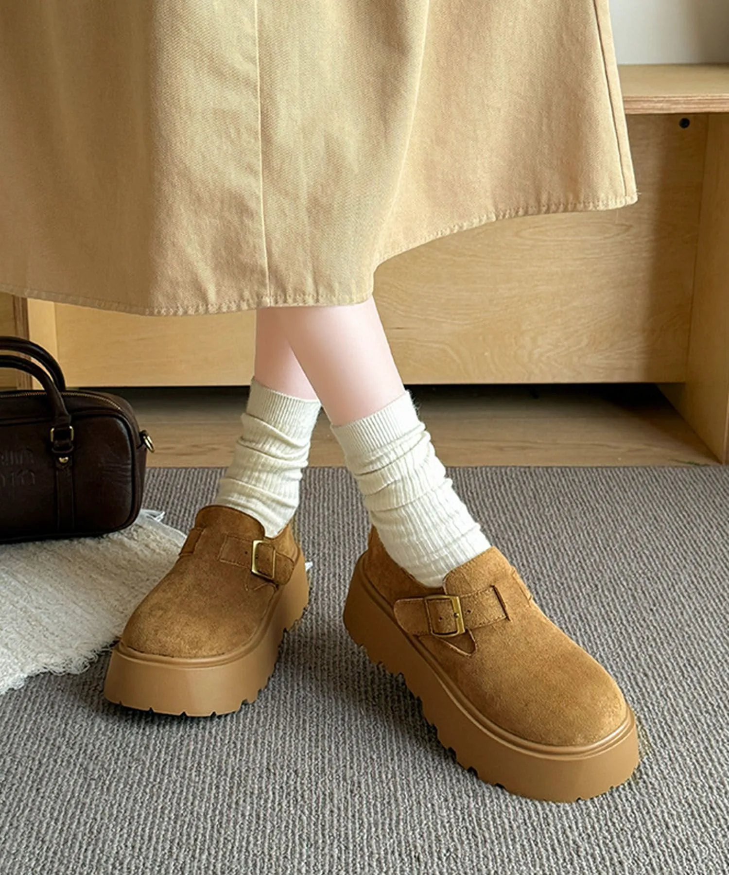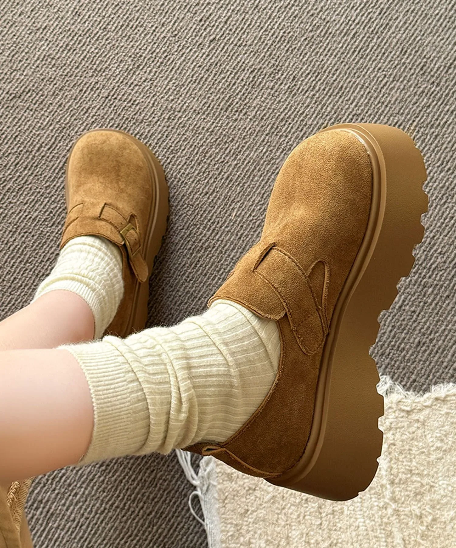Эти туфли на платформе, имитирующие замшу, сочетают в себе классический вид и модный тренд. Мягкий, сдержанный материал в сочетании с массивной платформенной подошвой создают стильный образ. Закругленный носок и пряжка придают им элегантность и очарование. Легко сочетаются с любым нарядом, идеально подходят для повседневной носки или выхода в свет. Они также хорошо смотрятся с носками, создавая сезонное настроение для осени и зимы.