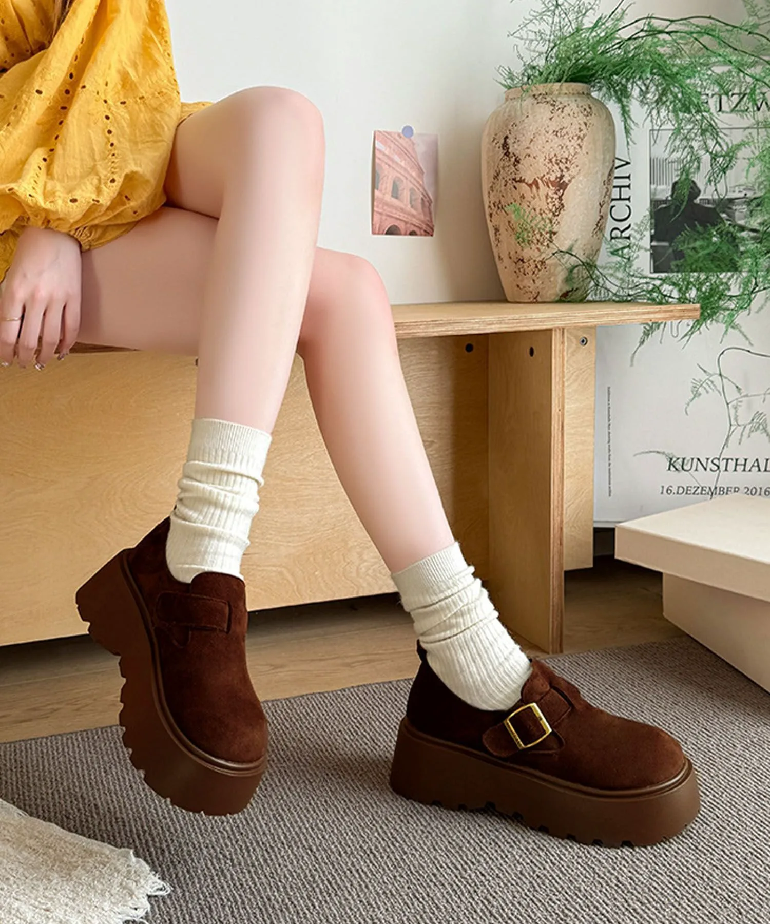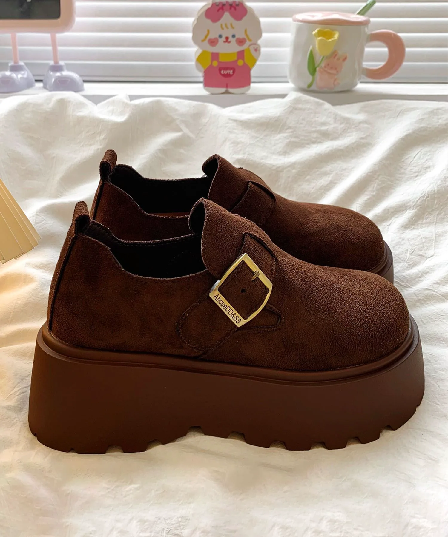 Эти туфли на платформе, имитирующие замшу, сочетают в себе классический вид и модный тренд. Мягкий, сдержанный материал в сочетании с массивной платформенной подошвой создают стильный образ. Закругленный носок и пряжка придают им элегантность и очарование. Легко сочетаются с любым нарядом, идеально подходят для повседневной носки или выхода в свет. Они также хорошо смотрятся с носками, создавая сезонное настроение для осени и зимы.
