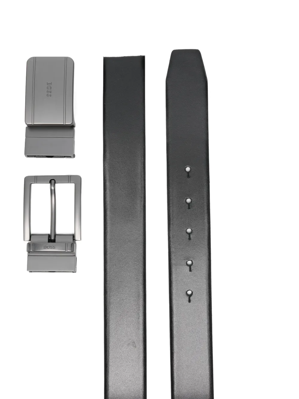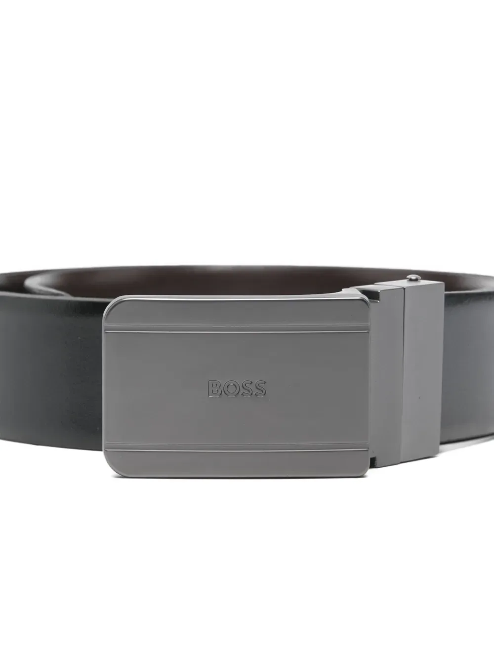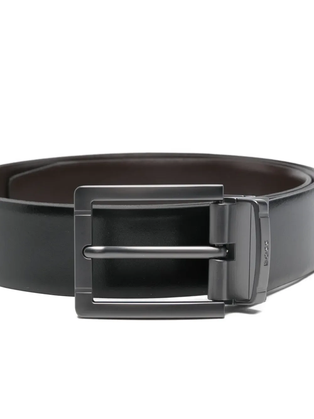 Кожаный ремень с логотипом BOSS, черный