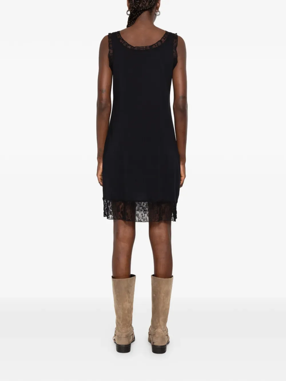 Черный топ без рукавов с кружевной отделкой