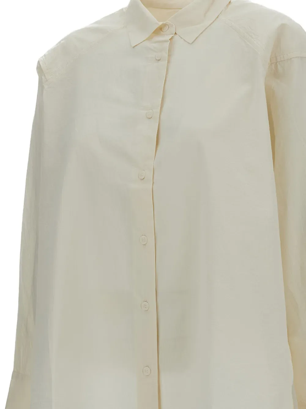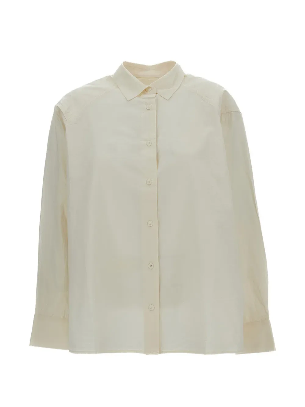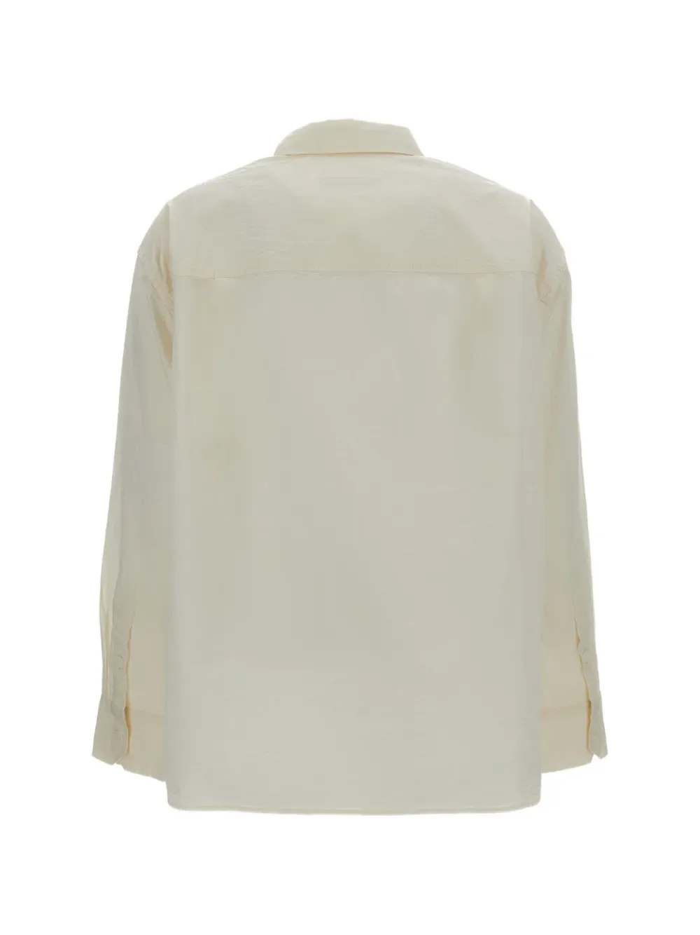 Белая рубашка с застежкой на пуговицы, длинными рукавами, классическим воротником и прямым подолом