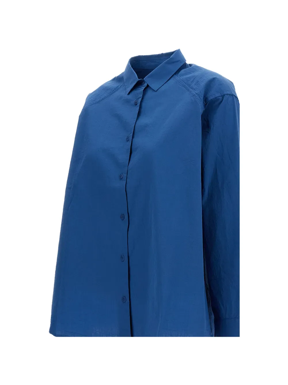 Синий, застежка на пуговицы, длинные рукава, манжеты на пуговицах, классический воротник, кокетка на спинке