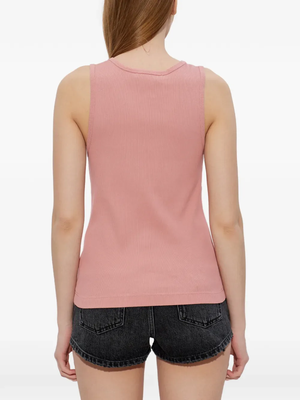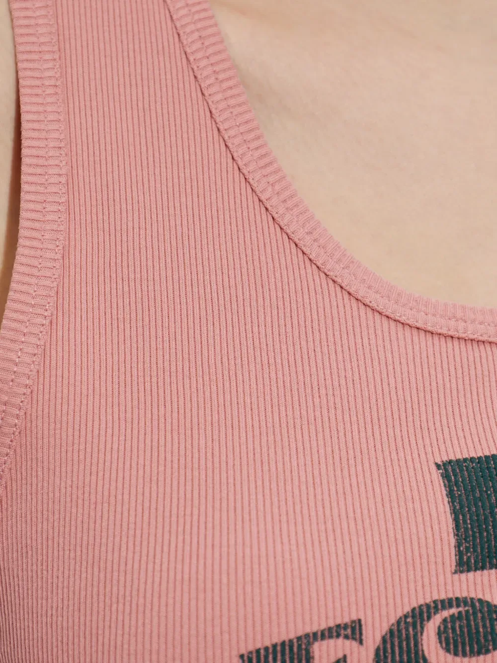 Розовая хлопковая майка с графическим принтом, ребристой текстурой и круглым вырезом