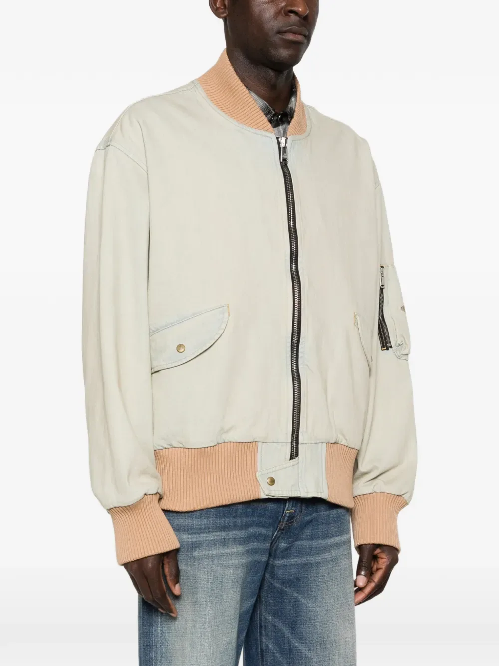 Светло-голубой, ребристая отделка, застежка-молния спереди, накладные карманы с клапанами, карман на рукаве на молнии