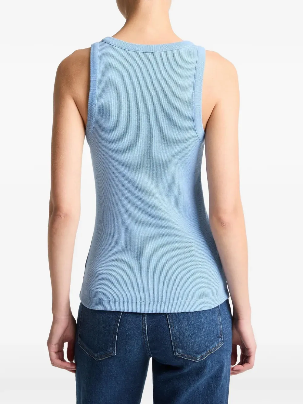 Синяя вязаная майка в рубчик с круглым вырезом и без рукавов