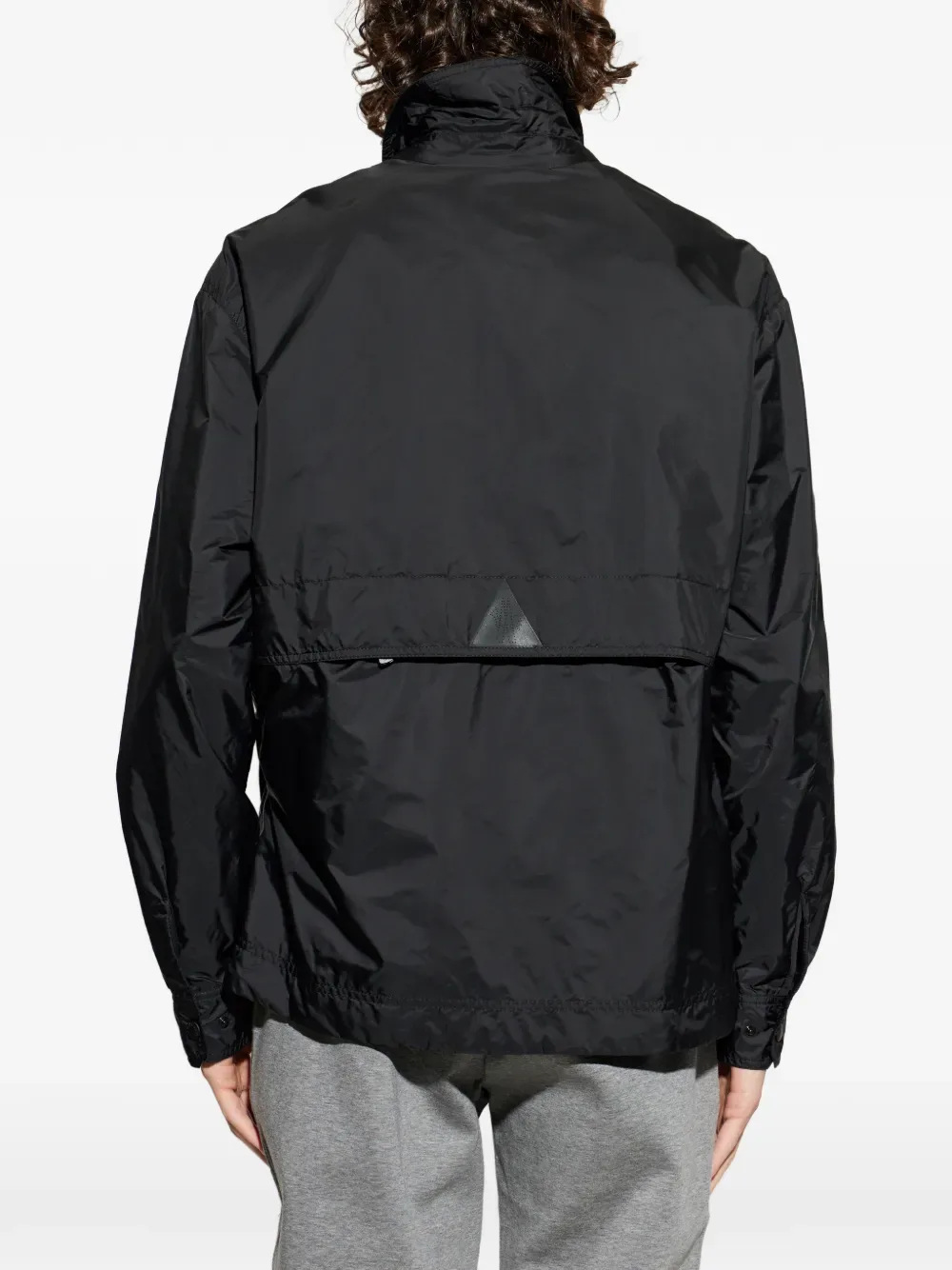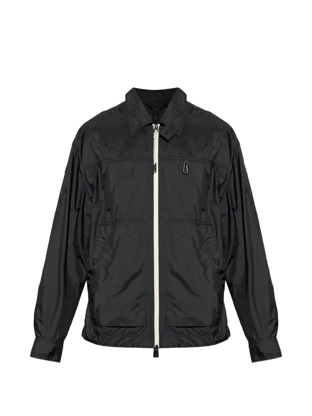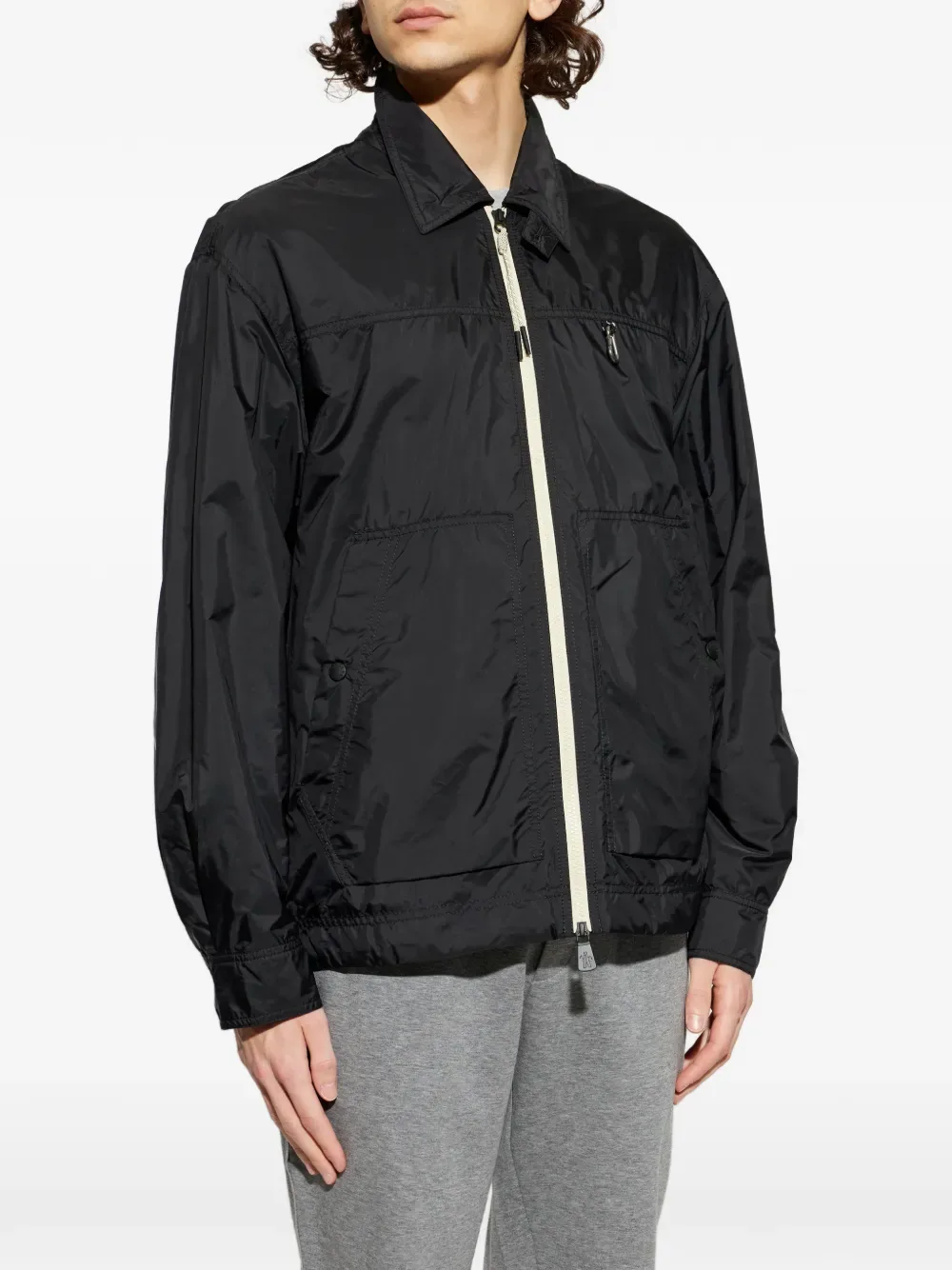 Черная застежка-молния, отложной воротник, передние карманы, манжеты на пуговицах, треугольная деталь