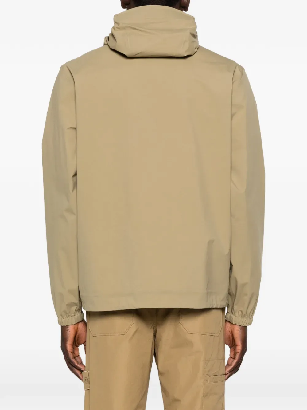 Бежевый, застежка-молния, капюшон, длинные рукава, карманы на молнии, нашивка с логотипом