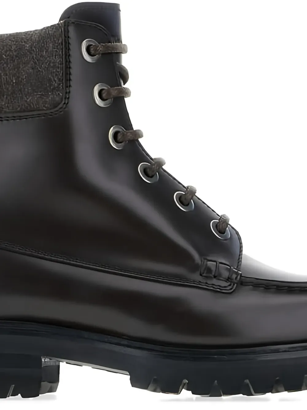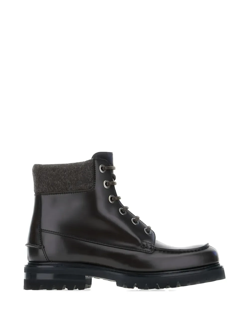 Коричневая кожаная обувь с округлым носком, шнуровкой спереди и рифленой подошвой