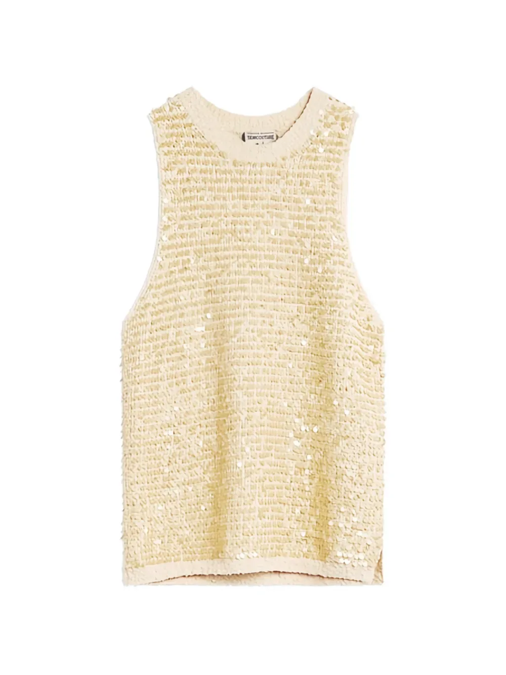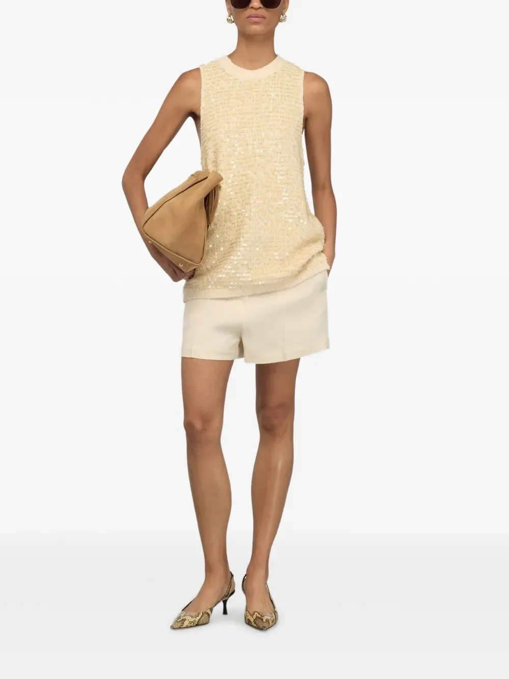Бежевый топ без рукавов с круглым вырезом и украшением пайетками