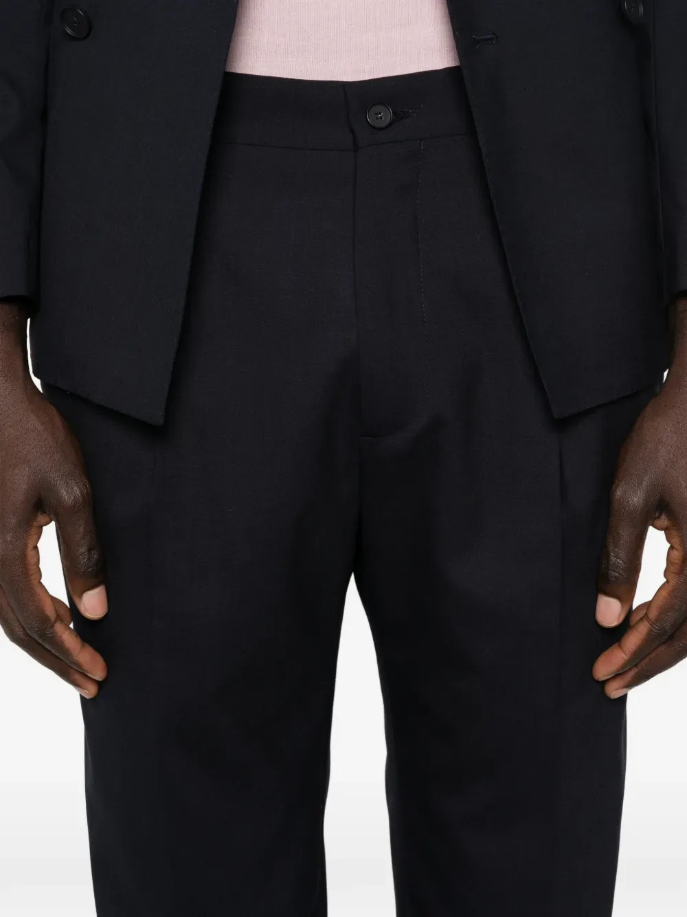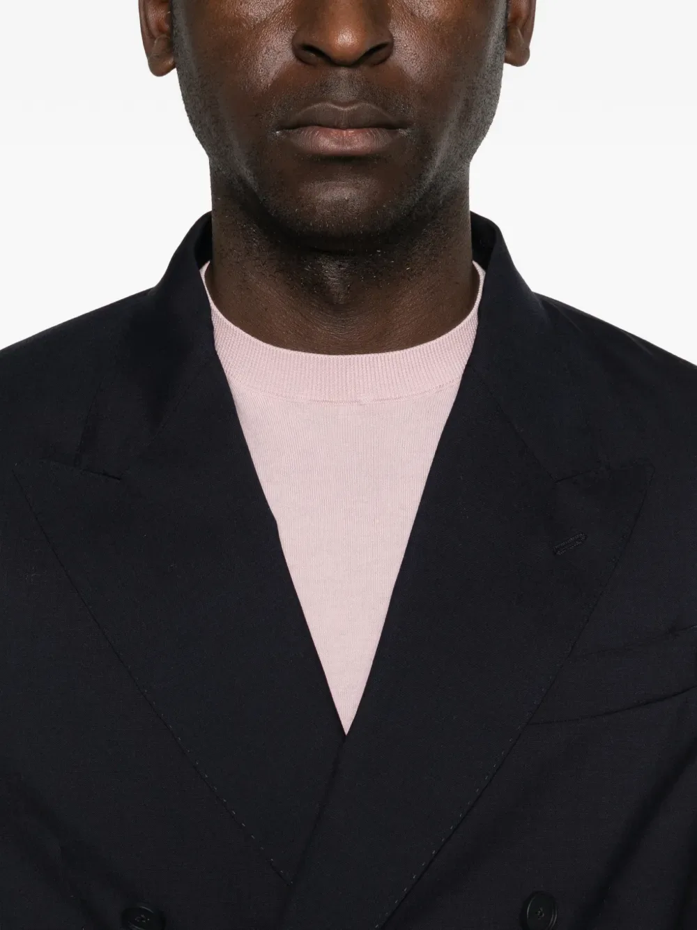 Синее двубортное изделие на пуговицах