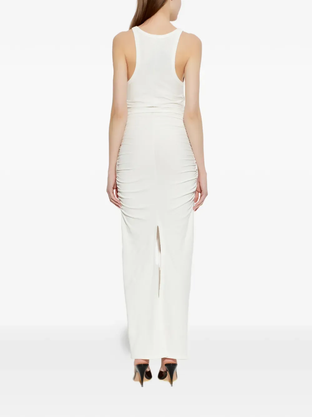 Белый топ без рукавов с присборенной отделкой и логотипом