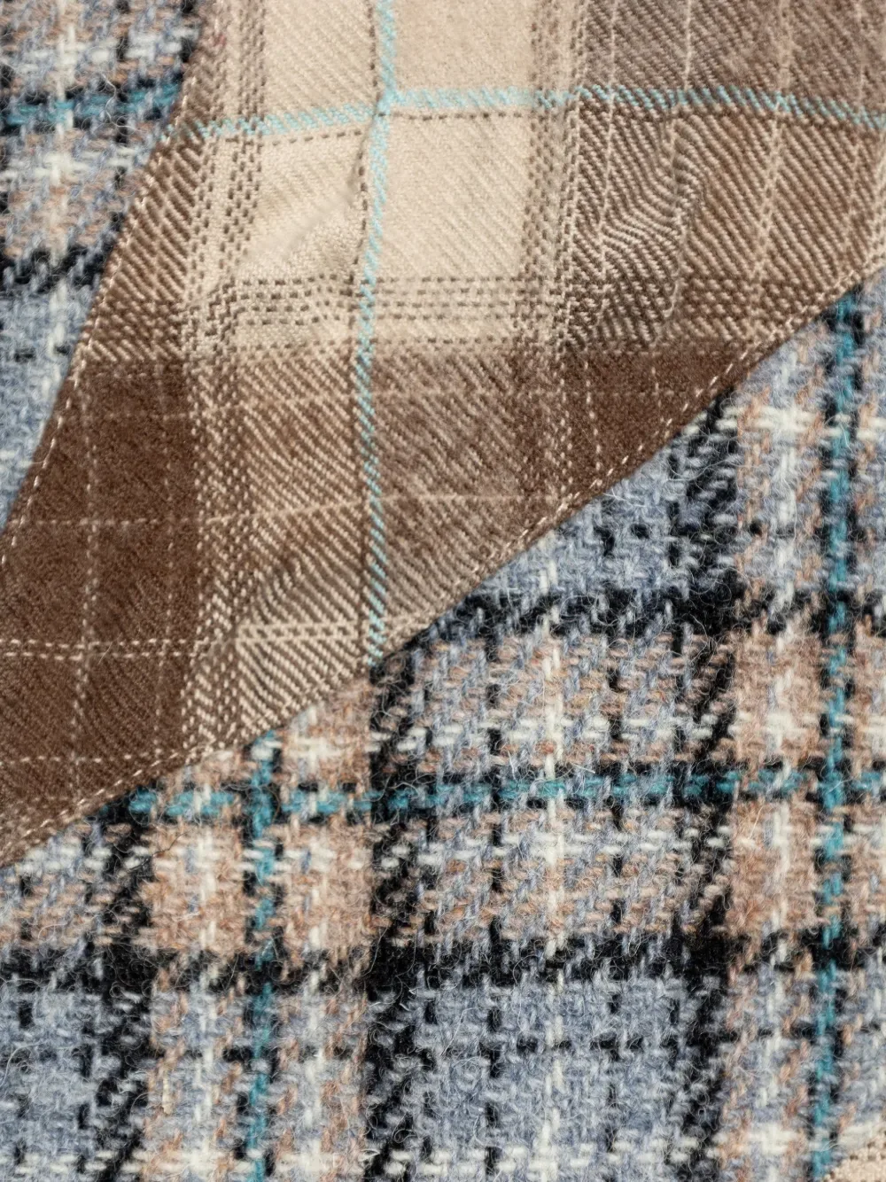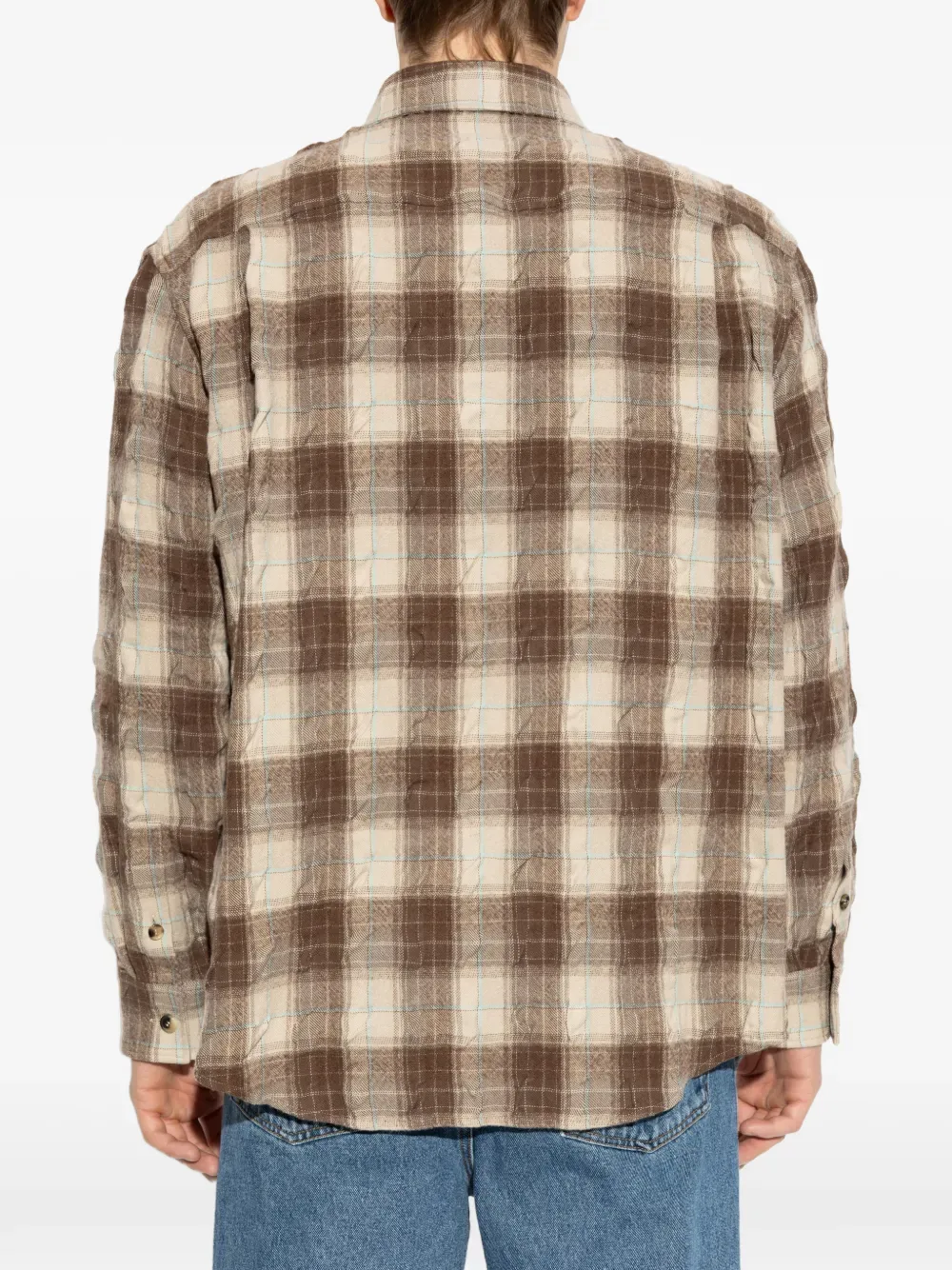 Коричнево-серая клетчатая заплаточная модель, застежка на пуговицы, длинные рукава, манжеты на пуговицах