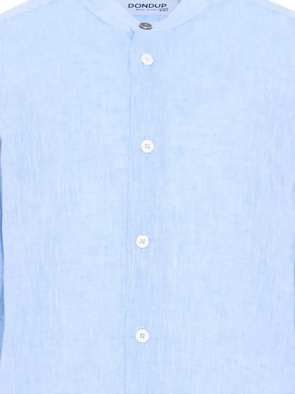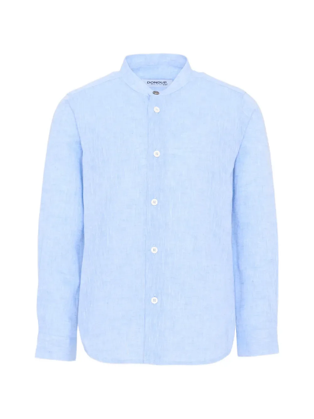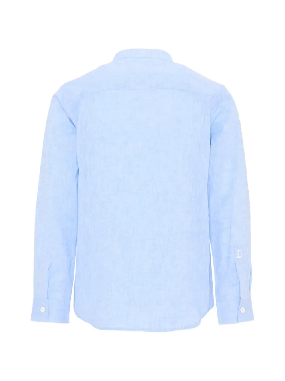 Небесно-голубая льняная рубашка с круглым вырезом, длинными рукавами и застежкой на пуговицы
