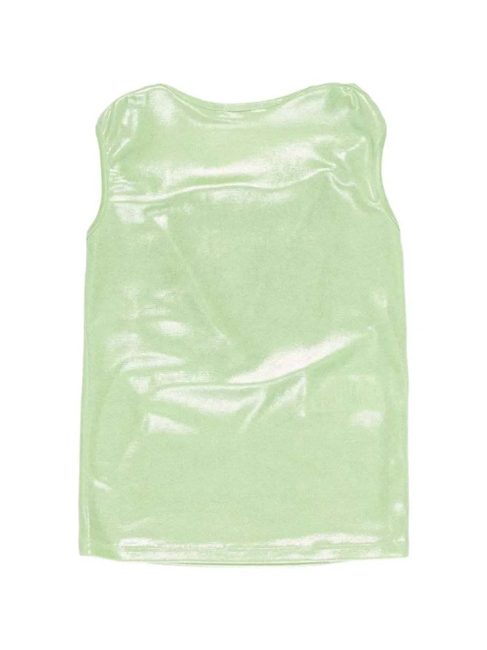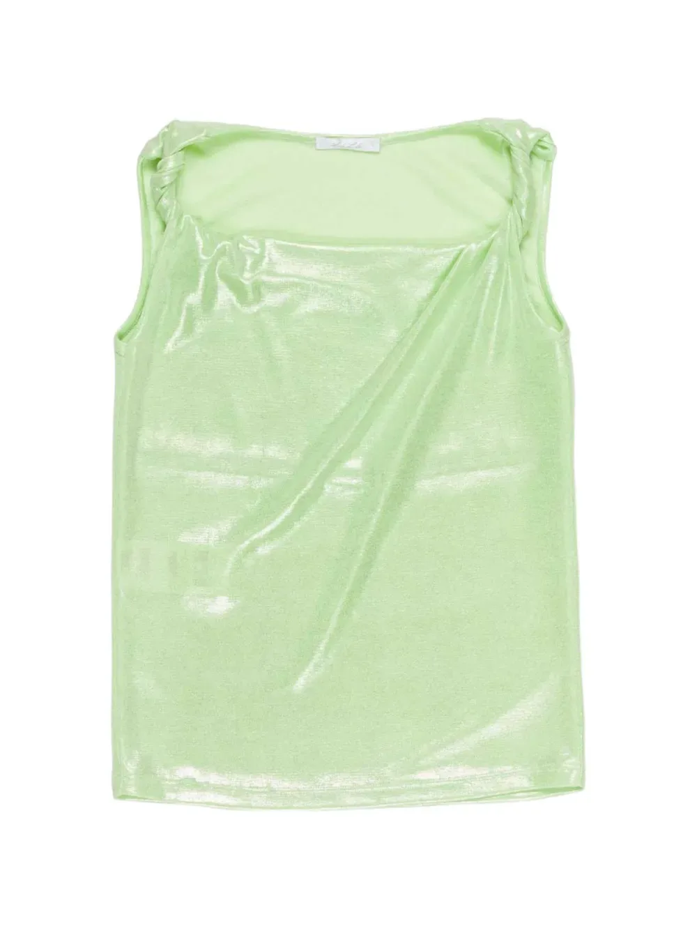 Зеленый топ с металлическим эффектом, без рукавов, с круглым вырезом и перекрученным плечом