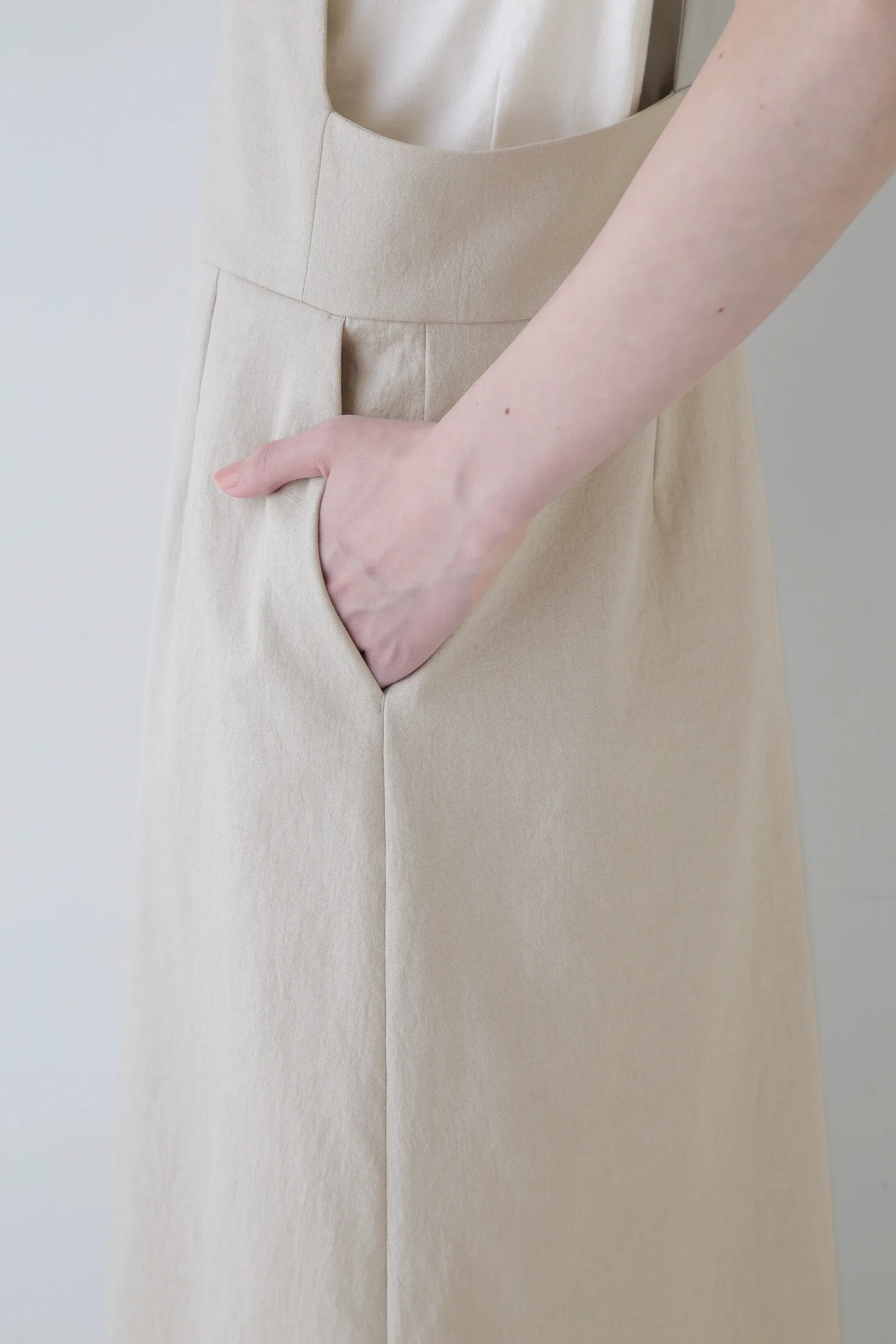 Изготовлена из синтетического волокна, похожего на лен, сотканного из натурального хлопка и триацетата с сухим на ощупь покрытием. Она обладает мягкой драпировкой и приятна на ощупь.