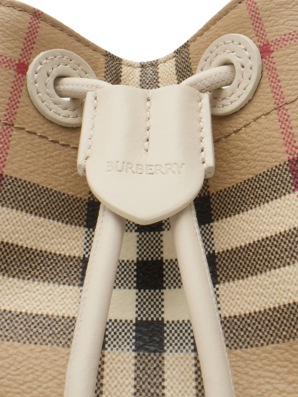Сумка-ведро, произведенная в Италии из покрытой хлопковой смеси с принтом Burberry Check. Мягкая конструкция имеет хлопковую подкладку и закрывается на шнурок с кожаным фиксатором. Сумку можно носить за верхнюю ручку или через плечо с помощью регулируемого ремня.