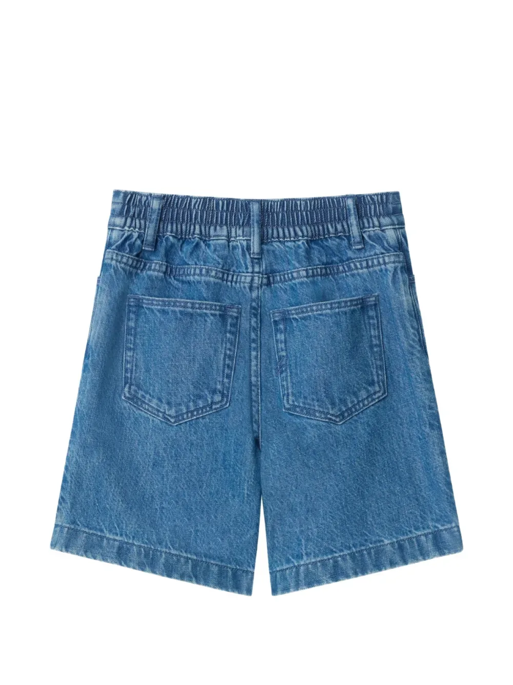 Пара шорт из денима, прошедших специальную стирку для мягкости. Модель с пятью карманами украшена вышитой нашивкой с изображением всадника-рыцаря и оснащена эластичной вставкой сзади для большего комфорта. Для возраста 3 года - застежка на пуговицу. Для возрастов 4-14 лет - застежка на пуговицу и молнию. Аппликация с изображением всадника-рыцаря спереди.