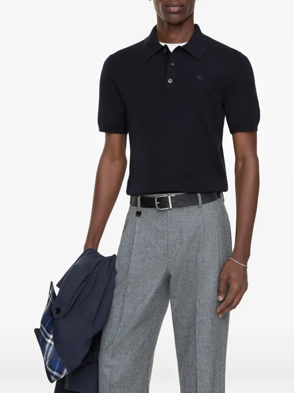Поло из легкого тонкого кашемира, выполненное в облегающем крое. Модель украшена ненавязчивой вышивкой с изображением нашего конного рыцаря и отделана планкой с подкладкой в тонкую клетку. Застежка на пуговицы, трикотажная отделка резинкой. Облегающий крой: эта модель выполнена по фигуре. Соответствует размеру, выбирайте свой обычный размер.