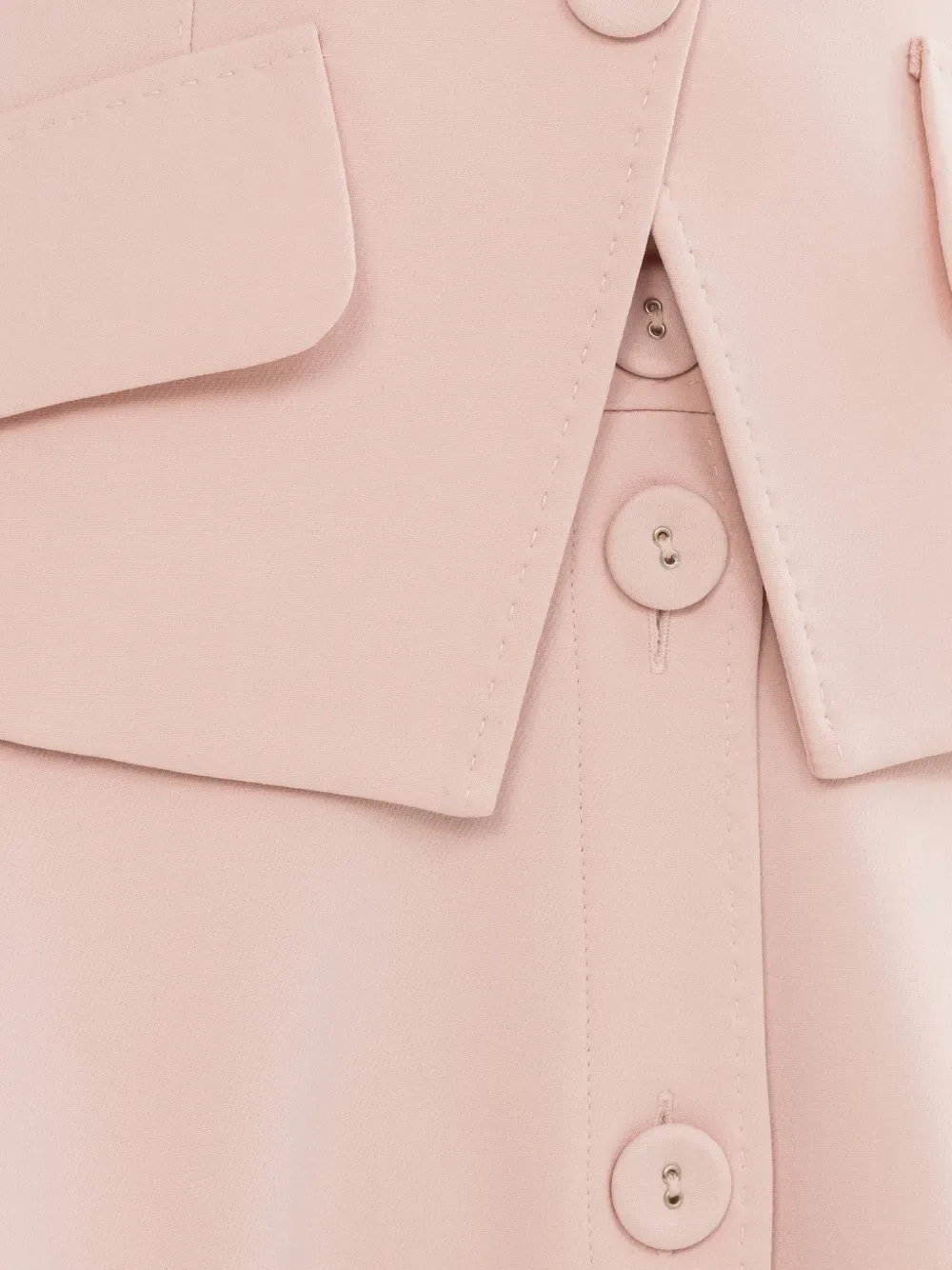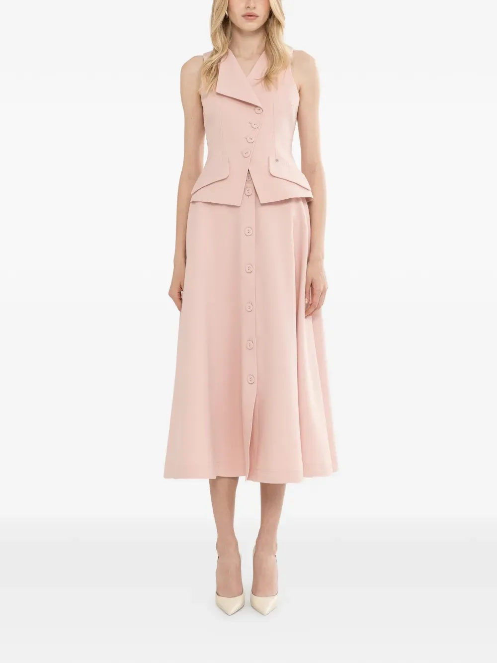 Розовое миди-платье А-силуэта с застежкой спереди, карманами и пуговицами