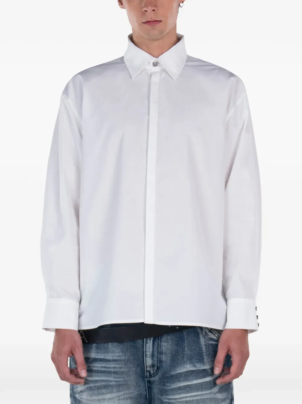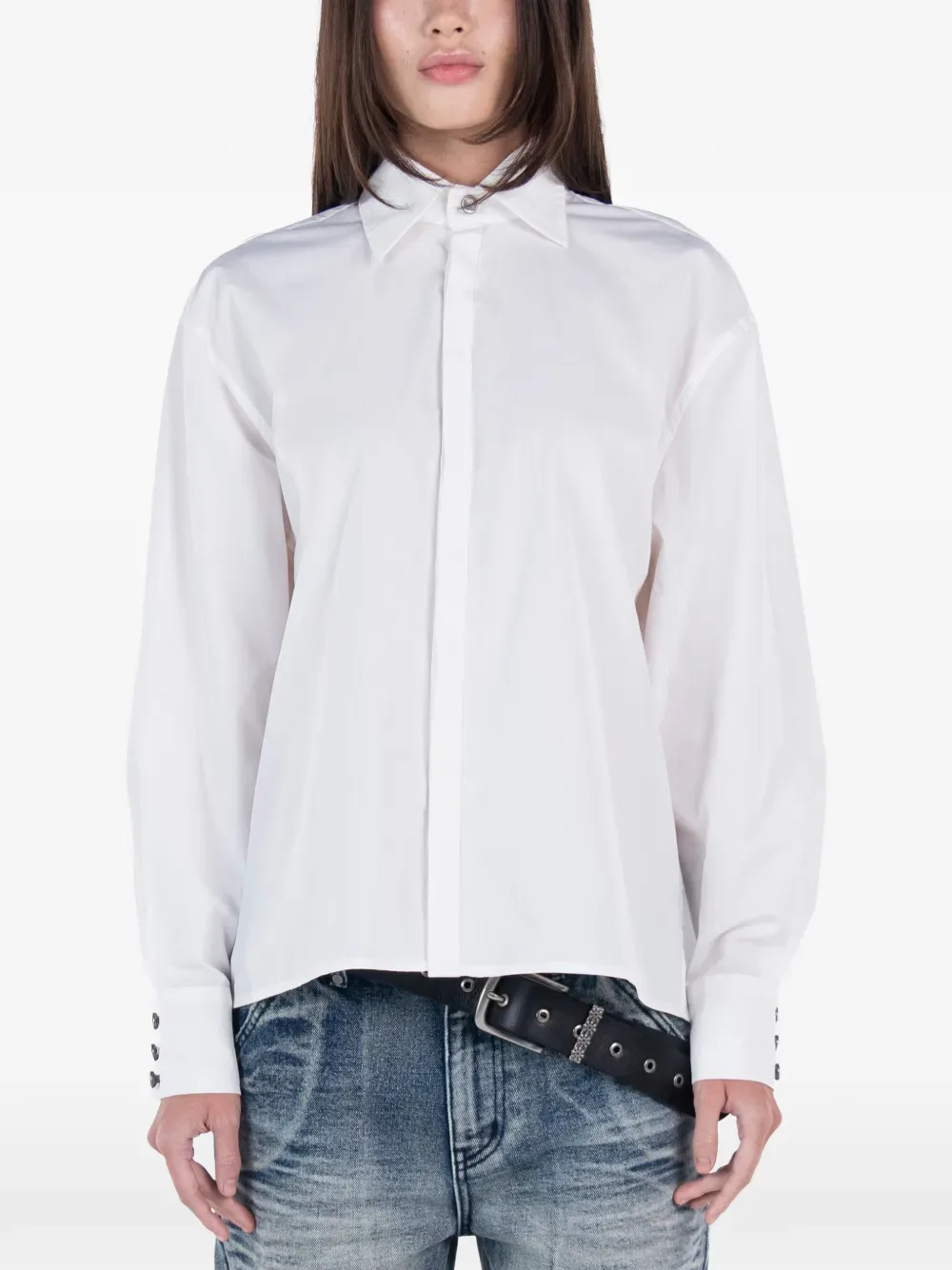 Белая рубашка с застежкой на пуговицы, длинными рукавами, манжетами на пуговицах и классическим воротником