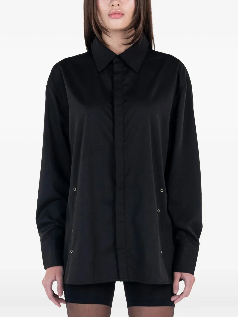 Черная хлопковая рубашка на пуговицах с длинными рукавами