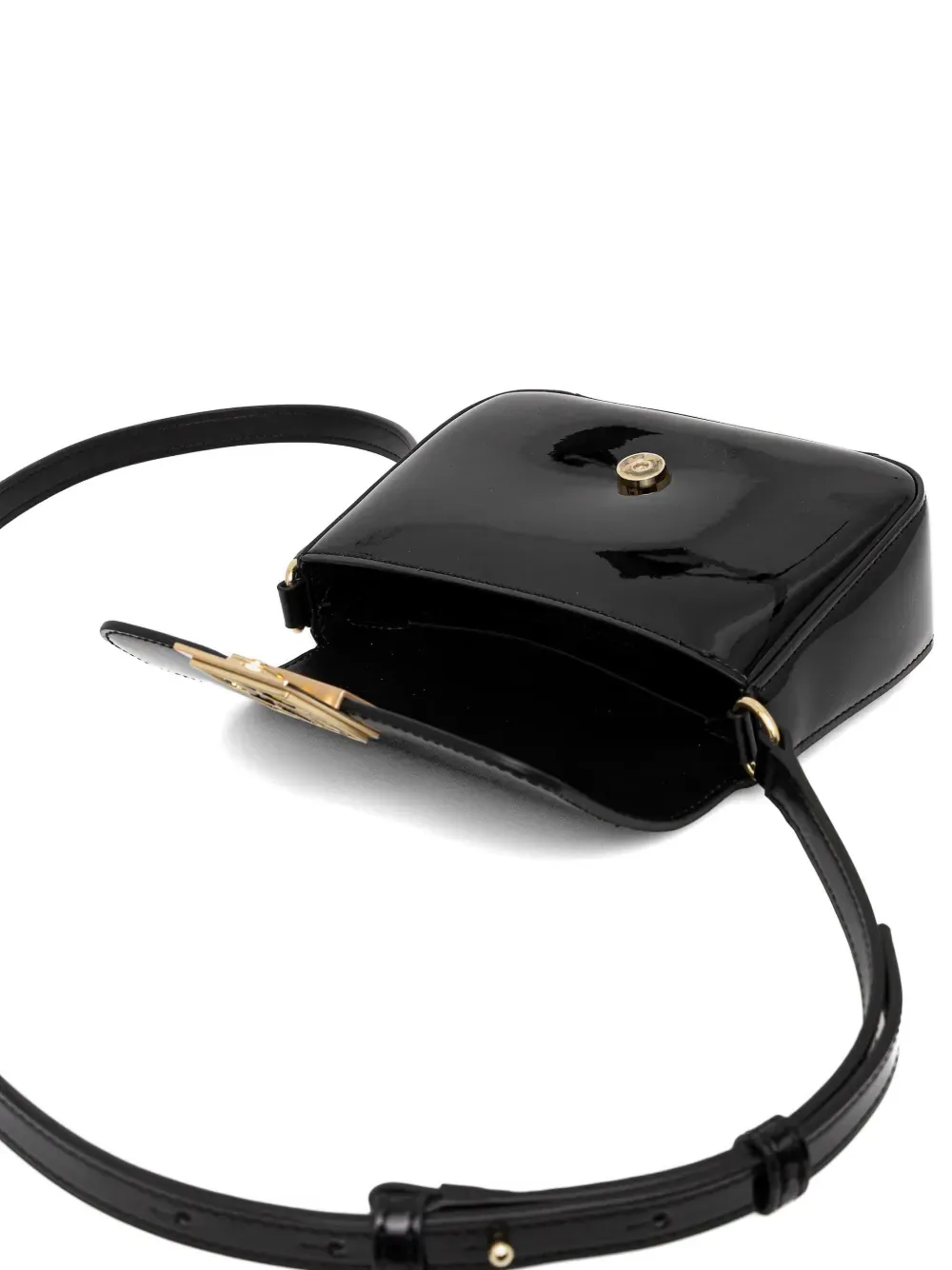 Черный, фурнитура золотистого оттенка, регулируемый плечевой ремень, клапан сверху, внутренний открытый карман
