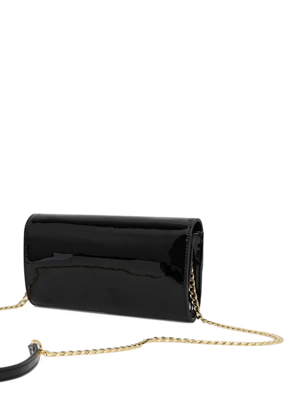 Черный цвет, фурнитура золотистого оттенка, съемный цепочный ремешок, застежка-кнопка, логотипная табличка, внутреннее застегивающееся на молнию отделение