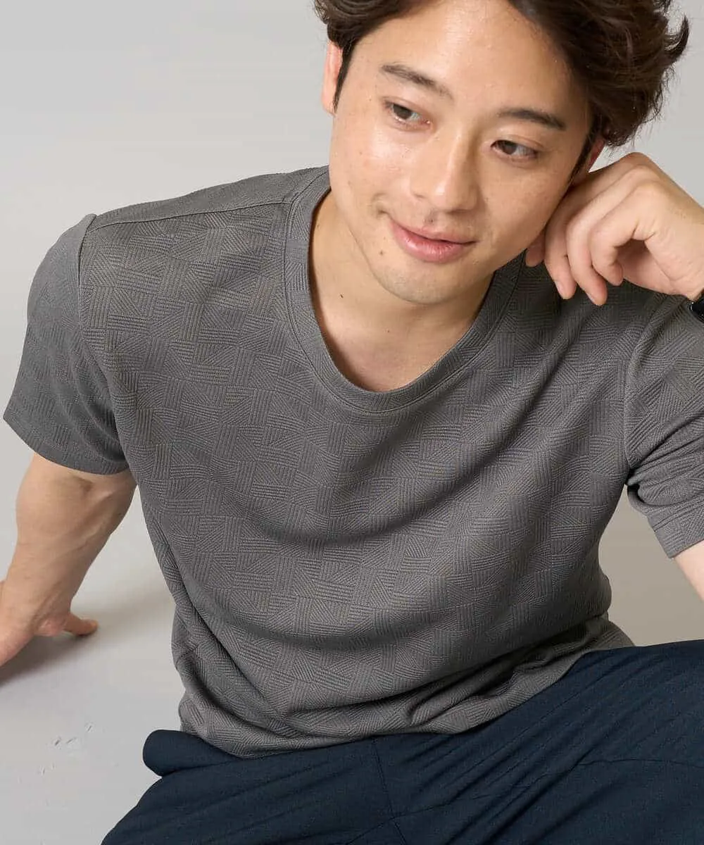 Материал изготовлен из жаккардового трикотажа с едва заметным узором в виде оборок. Пушистый жаккардовый материал непрозрачен даже в белом цвете, что позволяет чувствовать себя комфортно, нося его отдельно. Он прост в уходе и легко стирается в стиральной машине дома, что делает его идеальным для повседневной носки. Он изготовлен из охлаждающего материала, идеально подходящего для жарких летних месяцев. [Стиль] Сдержанный дизайн позволяет ему отлично смотреться сам по себе. Он хорошо сочетается с классическим жакетом и идеально подходит в качестве нижнего слоя для более формальных случаев. Умеренно облегающий крой позволяет легко надевать его поверх рубашки или кардигана. Простой дизайн также дополняет повседневный стиль. Сочетайте его с брюками для работы или с свободными брюками для отдыха.