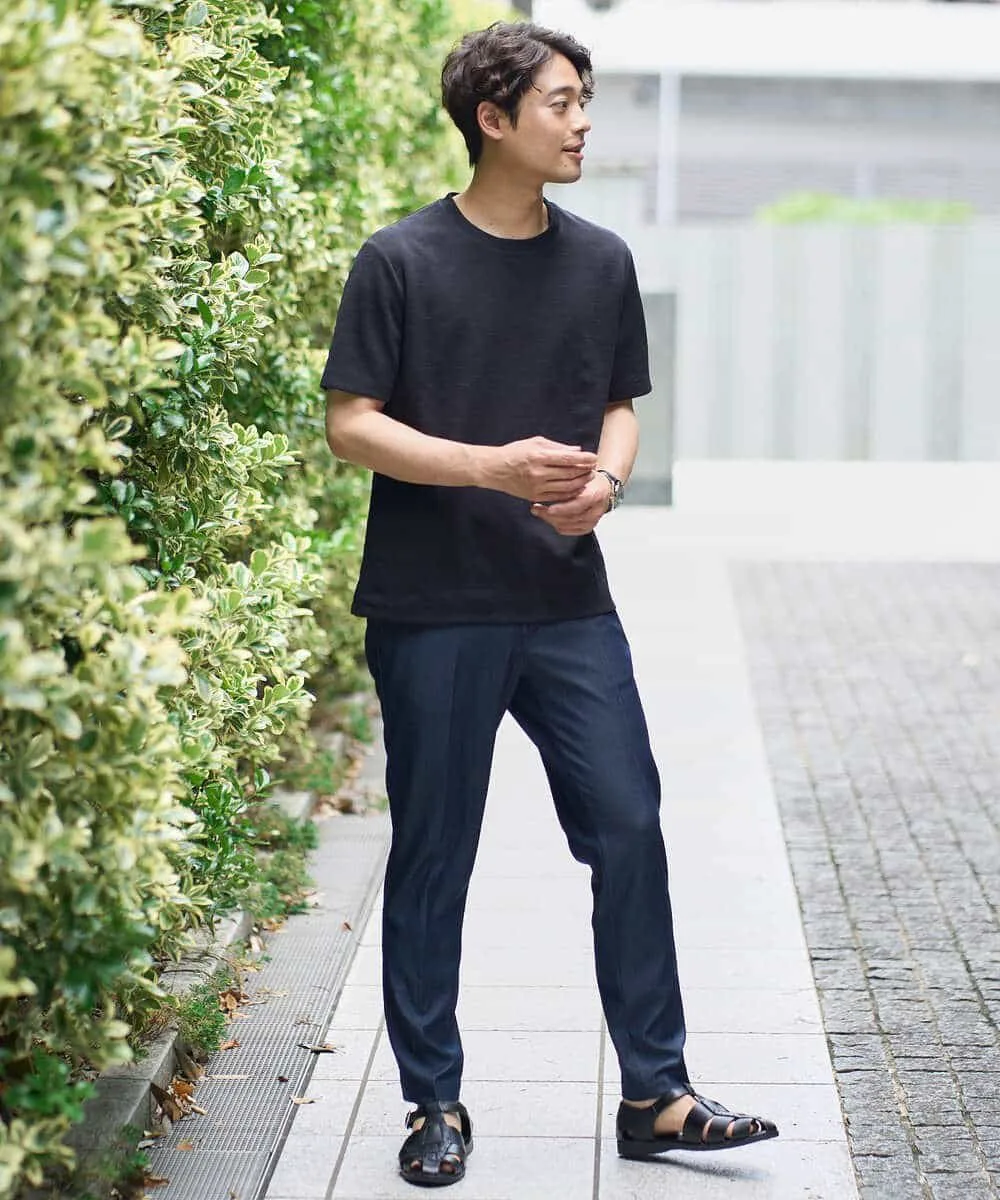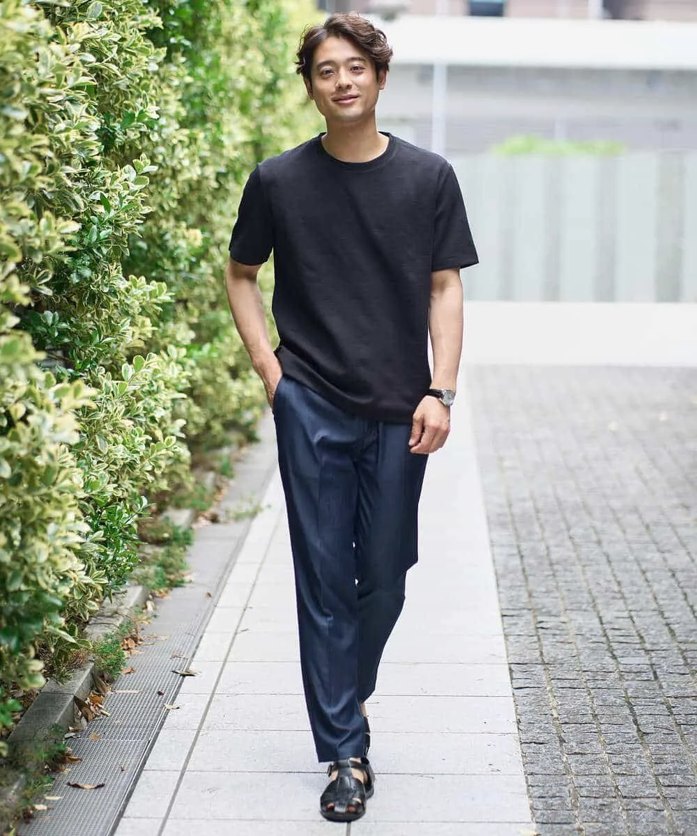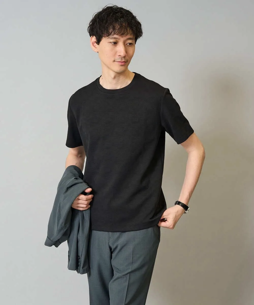 Материал изготовлен из жаккардового трикотажа с едва заметным узором в виде оборок. Пушистый жаккардовый материал непрозрачен даже в белом цвете, что позволяет чувствовать себя комфортно, нося его отдельно. Он прост в уходе и легко стирается в стиральной машине дома, что делает его идеальным для повседневной носки. Он изготовлен из охлаждающего материала, идеально подходящего для жарких летних месяцев. [Стиль] Сдержанный дизайн позволяет ему отлично смотреться сам по себе. Он хорошо сочетается с классическим жакетом и идеально подходит в качестве нижнего слоя для более формальных случаев. Умеренно облегающий крой позволяет легко надевать его поверх рубашки или кардигана. Простой дизайн также дополняет повседневный стиль. Сочетайте его с брюками для работы или с свободными брюками для отдыха.