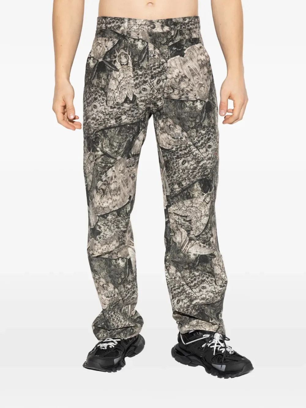 Серые брюки с принтом и шлевками для ремня
