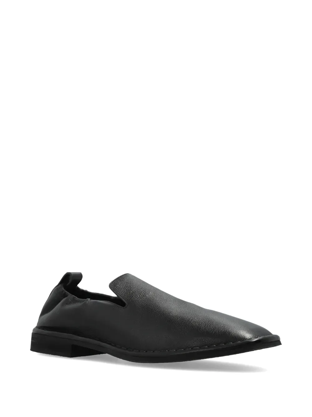 Черные кожаные сллипоны с язычком, квадратным мысом и плоской подошвой