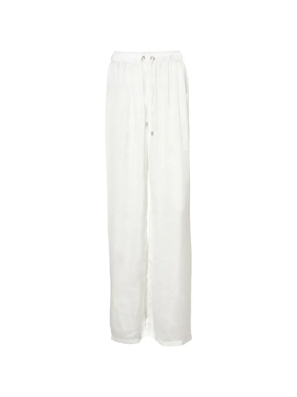 Белые широкие брюки с эластичным поясом на завязке
