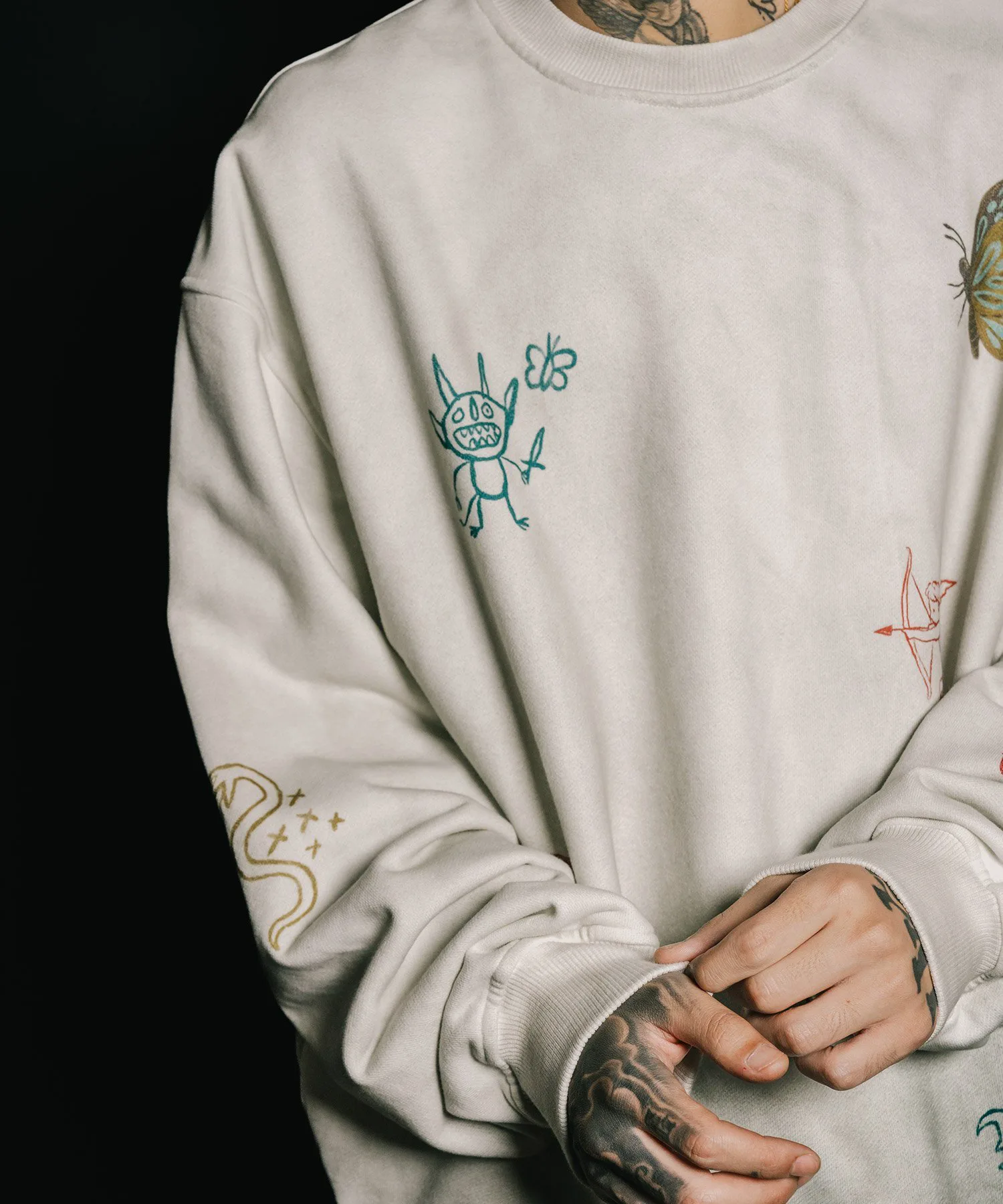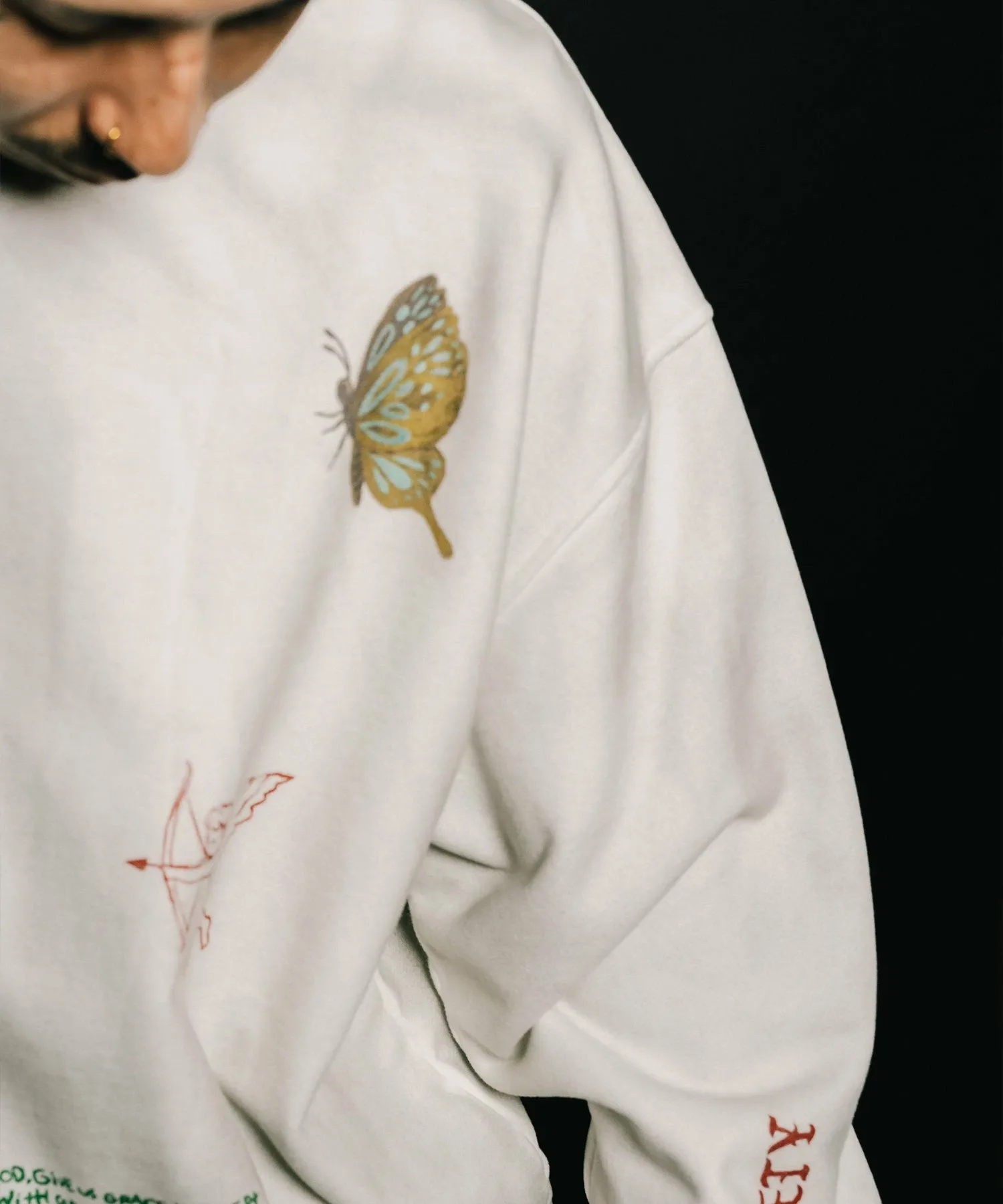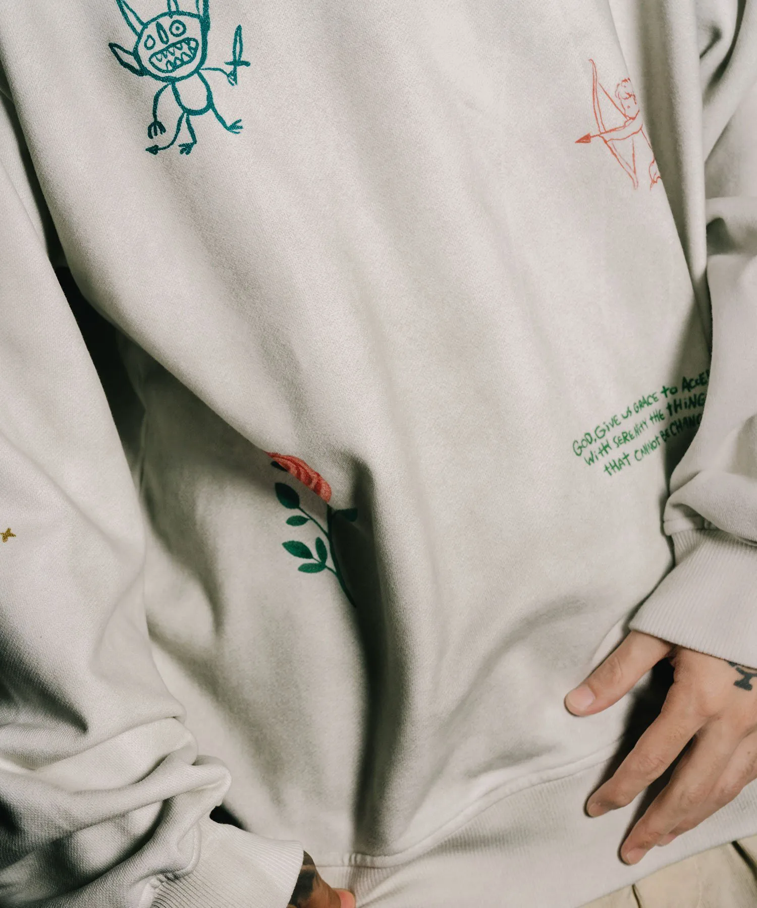 Свитшот изготовлен из махровой ткани плотностью 13,6 унций.